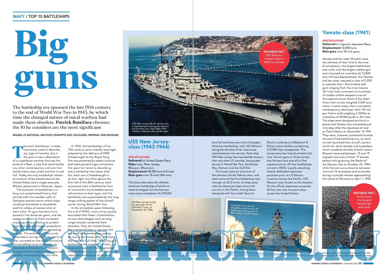 Description: Warships IFR puts the spotlight on the latest developments in the world’s navies. It covers current defence issues and has comments by leading analysts. The magazine regularly includes features on the Royal Navy and the US Navy in addition to incorporating news and features on all other navies across the globe. Warships IFR frequently carries in-depth articles on naval heritage.WARSHIPS International Fleet Review is published 12 times a year by Tandy Media Ltd who also publish Shipping Today & Yesterday (which provides news and features from the world of merchant shipping).