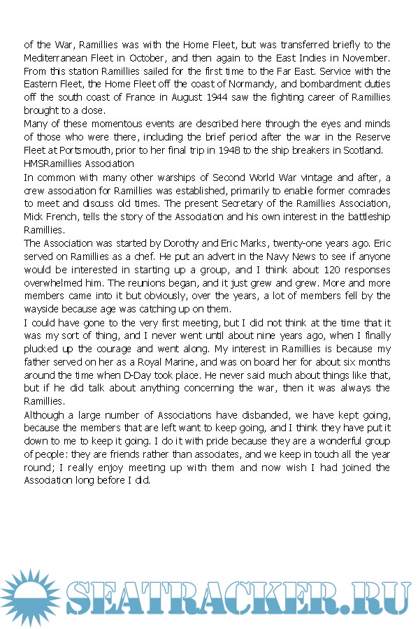 Description: HMS Ramillies was the last battleship to join the Grand Fleet in 1917 and survived to fight in the Second World War. Although the ship did not make headlines, she was actively employed from start to finish, and even survived being torpedoed by a Japanese submarine. In this respect she was typical rather than extraordinary but, like any large ship, to her crew she was unique - she was certainly the only ship in British naval history whose captain wore a grass skirt into battle (honoring a Maori belief that the ship would come to no harm while he did so; Ramillies survived the war).