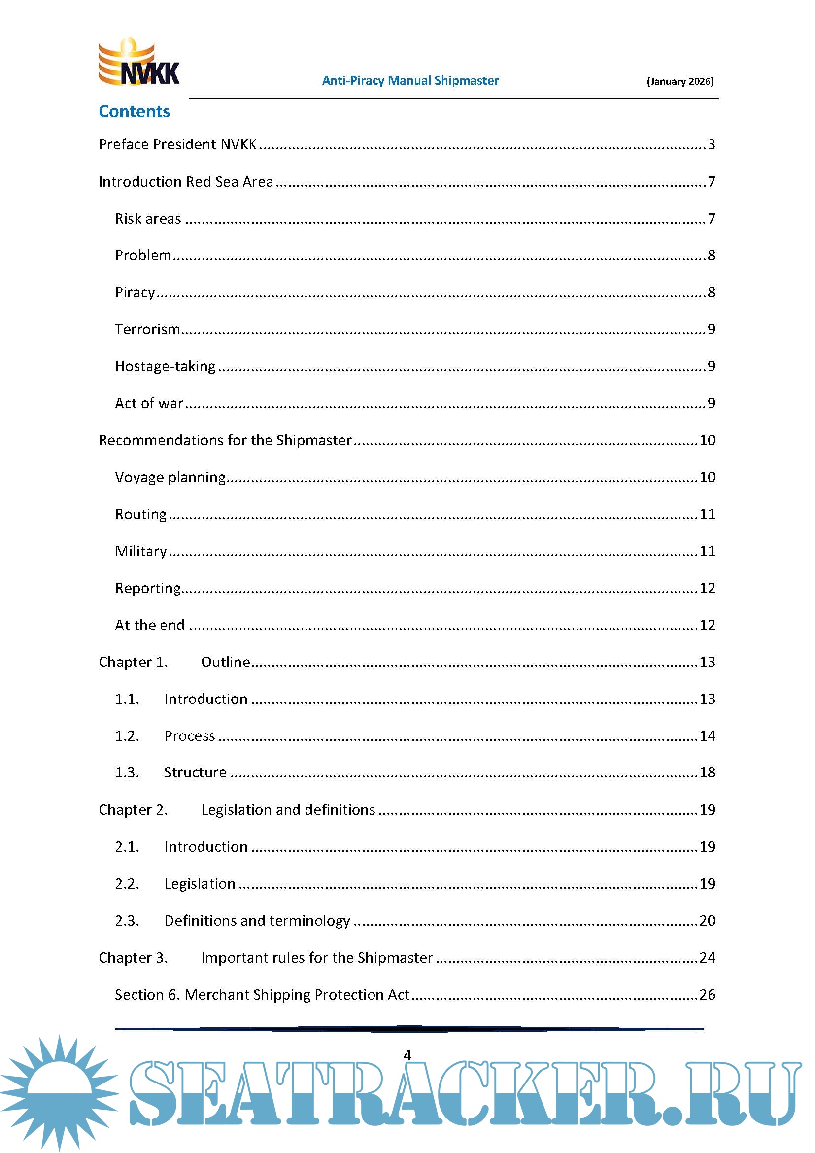 Year: 2026 Language: English Author: Peter van der Kruit Genre: Manual Publisher: Netherlands Shipmasters’ Association (NVKK) Edition: 3rd Updated Digital edition (January 2026) Format: PDF Quality: eBook Pages count: 80 Description: This Manual applies only and specifically to piracy in the southern Red Sea, the Gulf of Aden and along part of the coast of East Africa, so in the official and legal risk area. See Figure 2 for the actual risk area for piracy. However, many more maritime crimes and even acts of war occur in that region. Here too, the Shipmaster has a great responsibility for his ship and crew. These other maritime crimes and acts of war are briefly described in this Introduction, including the area where they are contended. Then some recommendations will be made for the Shipmaster to address the other maritime crimes and acts of war. Anti-Piracy Manual for the Shipmaster of a ship flying the flag of the Netherlands. A practical, legal reference work for the Shipmaster to help protect his ship and those on board against pirates in the Gulf of Aden and along a section of the coast of East Africa, in the official Risk Area. This practical Manual, with a large number of uniquely numbered checklists, is intended for masters of ships sailing under the Dutch flag, who may encounter piracy during their voyage. From the preparation of the voyage to the final mandatory travel reports, the shipmaster are guided in their task. The core of this Manual is formed by a number of uniquely numbered checklists to make sure the shipmaster does not forget anything. Furthermore, a number of important subjects are discussed, such as the use of force, notifications and reports, fines, etc. This manual is primarily for the shipmaster, but it is also recommended to all other seafarers and interested parties, such as ship managers, trade unions, educational institutions and the government. Additional info: This Manual only applies to piracy in the Southern Red Sea, the Gulf of Aden and along a section of the coast of East Africa, in the official Risk Area. :