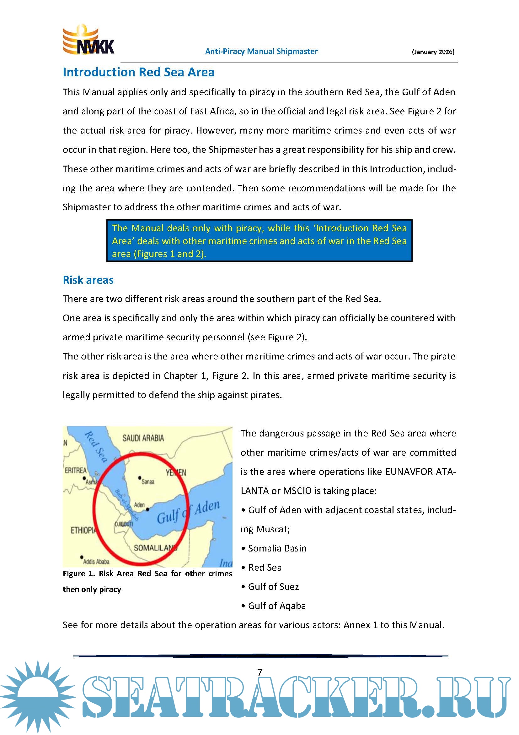 Additional info: This Manual only applies to piracy in the Southern Red Sea, the Gulf of Aden and along a section of the coast of East Africa, in the official Risk Area.