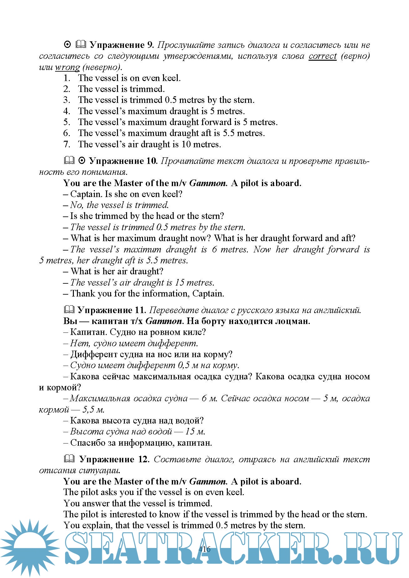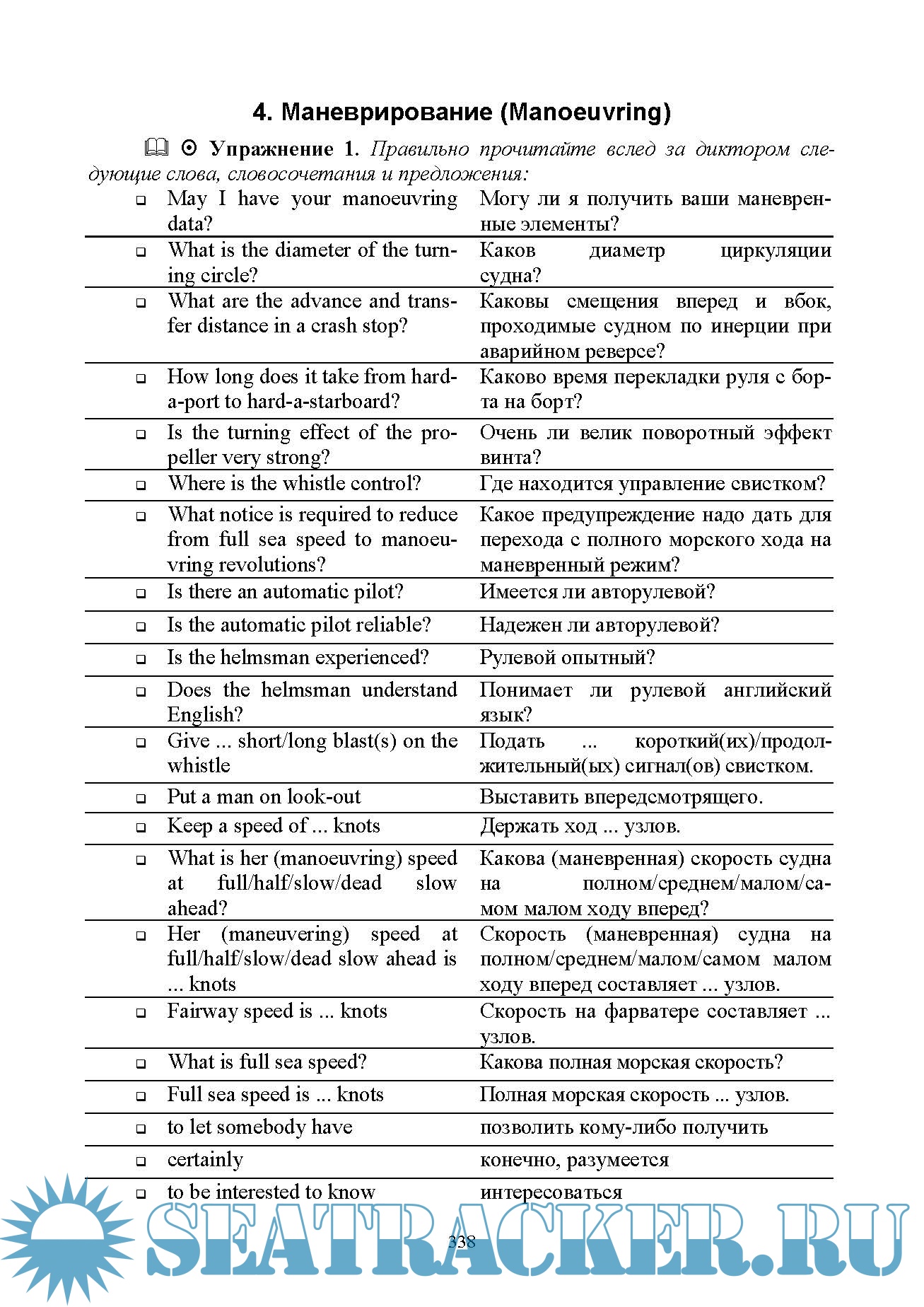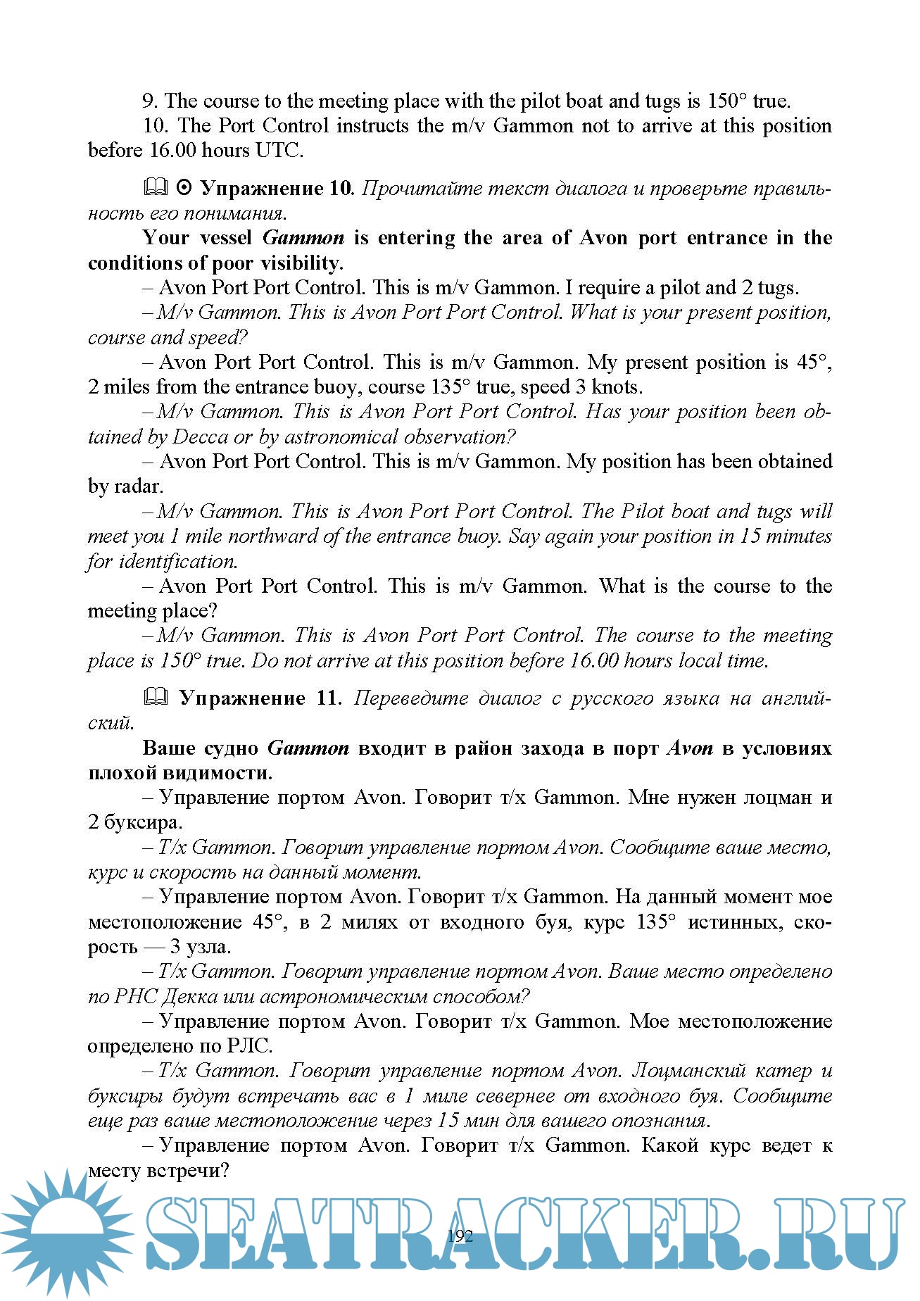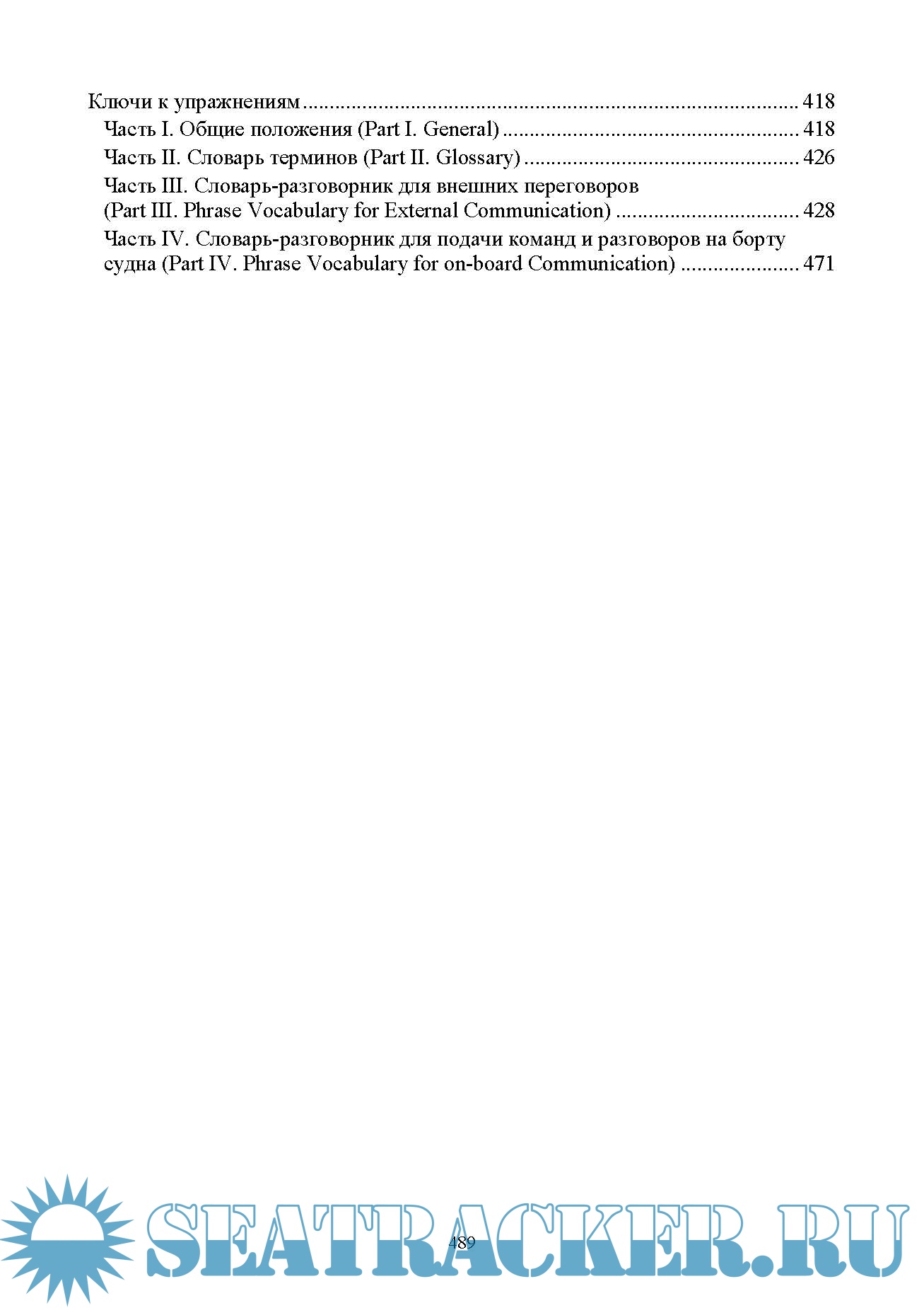 Год выпуска: 2023 Язык: Русский Автор: Вохмянин С. Н. Жанр: Учебное пособие для вузов Издательство: «Издательство Лань» Издание: 3-е ISBN: 9785507472567 Формат: PDF, MP3 Качество: Изначально компьютерное (eBook) Количество страниц: 490 Аудио кодек: MP3 Аудио: MPEG 44.1 KHz x 128 Kbps Aудио Продолжительность: ~ 990 мин Описание: Требования к подготовке моряков в области английского языка определены «Международной конвенцией о подготовке и дипломировании моряков и несении вахты», принятой с поправками ИМО в 1995 г. (ПДНВ 78/95). Особое место среди этих требований занимает умение пользоваться Стандартным морским навигационным словарем-разговорником (СМНСР), который в 2001 году был заменен на более объемные «Стандартные фразы ИМО для общения на море», однако составил их обязательную часть. В отличие от имеющихся публикаций, которые посвящены этой теме, но носят прежде всего справочный характер, настоящее учебное пособие ставит перед собой цель научить активно пользоваться Словарем, для чего разработана система языковых и речевых упражнений. К упражнениям в конце книги даны ключи. Издание предназначено для всех судоводителей командного состава, которые должны соответствовать требованиям конвенции ПДНВ 78/95, для курсантов высших учебных заведений водного транспорта очного и заочного обучения по специальности «Судовождение», а также для курсов повышения квалификации и для самостоятельного изучения. Доп. информация: Текст СМНСР и большинство упражнений озвучены (объем ~ 990 мин) и прилагаются в формате mp3. Аудиопрактикум: https://seatracker.me/viewtopic.php?t=67919 :