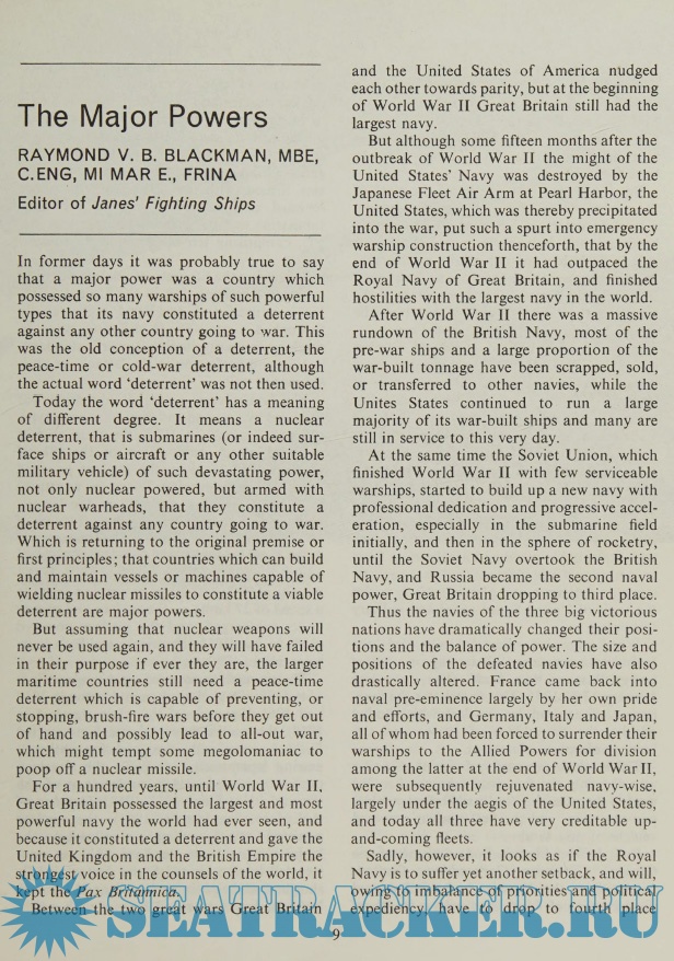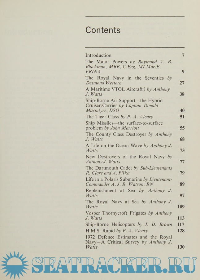 Year: 1973 Language: English Author: Anthony J. Watts Genre: History of the Navy Publisher: Ian Allan Format: PDF Quality: Scanned pages Pages count: 144 Description: The book contains articles describing various aspects of the Royal Navy.
