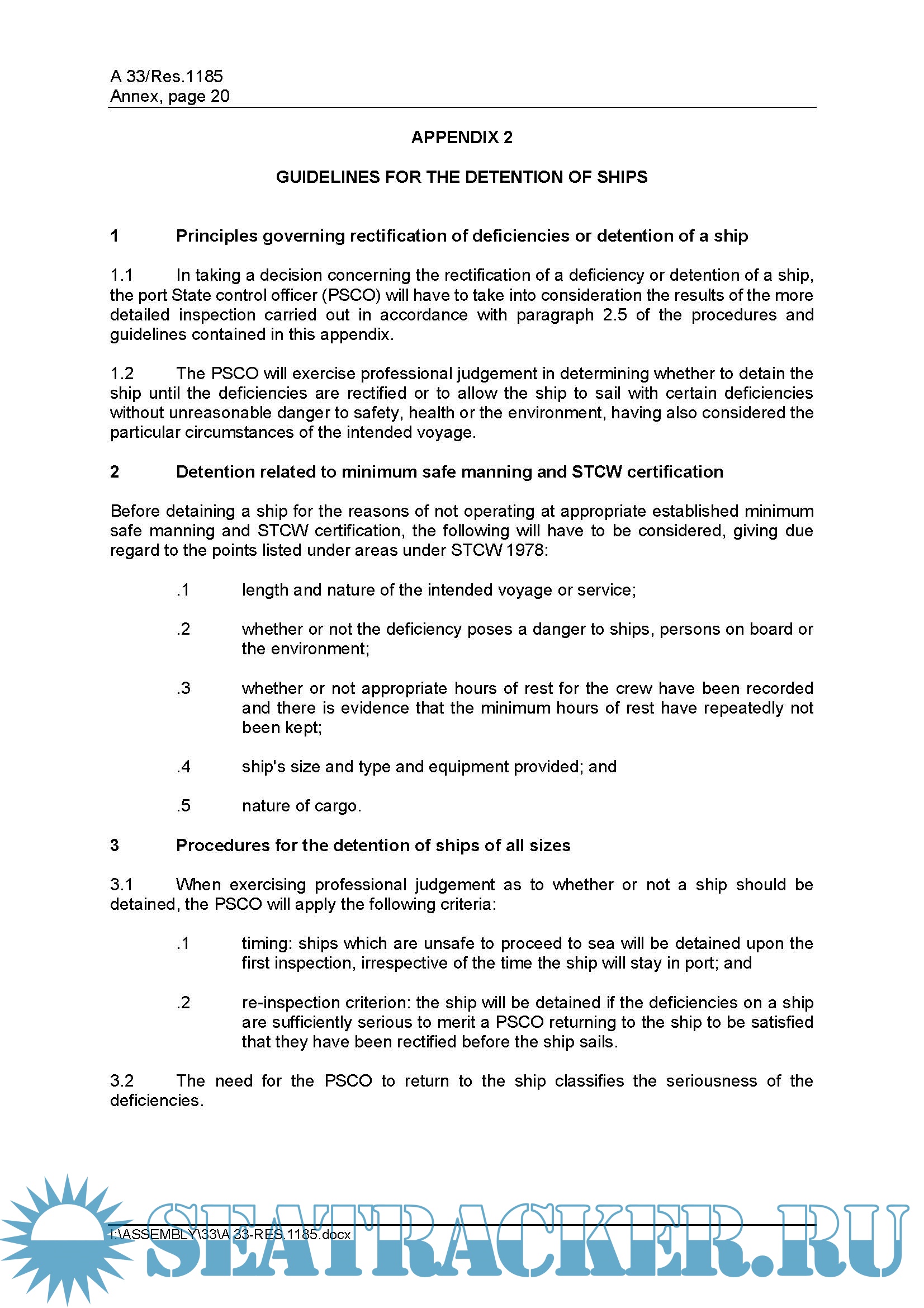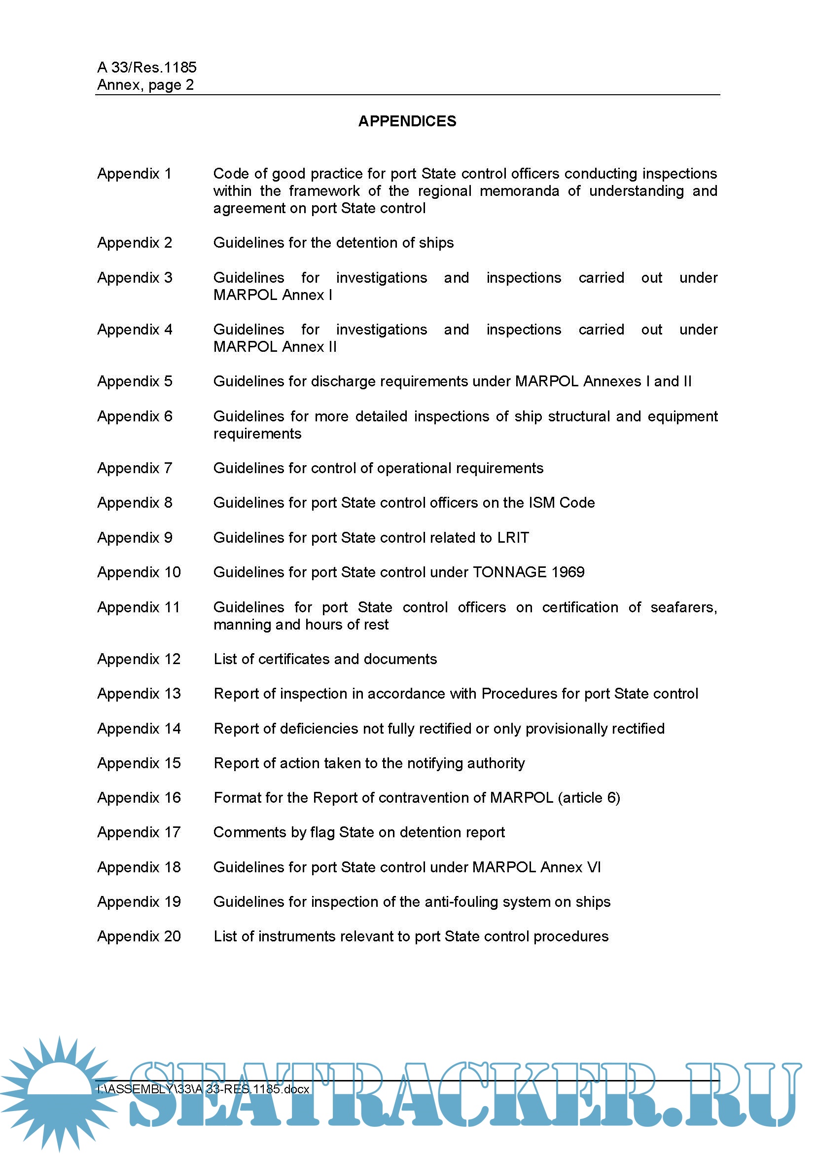 The 2024 edition of Procedures for Port State Control, 2023 provides guidance to PSCOs on the conduct of inspections of foreign ships to promote consistency in the way inspections are carried out worldwide and to harmonize the criteria for deciding on deficiencies found on board relating to the ship, its equipment or its crew, as well as the application of procedures. It contains 20 appendices, including the Code of good practice for port State control officers, and a series of technical and operational guidelines with respect to relevant IMO conventions and mandatory codes, such as SOLAS 1974, SOLAS PROT 1988, LL 1966, LL PROT 1988, MARPOL, STCW 1978, TONNAGE 1969, COLREG 1972, AFS 2001 and the International Safety Management Code. This edition contains amendments to the Guidelines for the detention of ships (appendix 2), the Guidelines for port State control under MARPOL Annex VI (appendix 18), and new Guidelines for inspection of anti-fouling systems on ships (appendix 19).