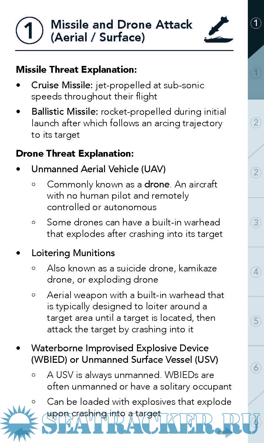 Bridge cards are quick reference guides that aim to support seafarers during times of tension caused by piracy attacks or other security threats. They summarize and present important information in a clear, unambiguous, and easy to perceive manner, including reporting routines, contact details of regional reporting centers, how to detect a suspicious approach or attack early on, as well as recommended actions that can be taken in response to a number of malign activity situations.