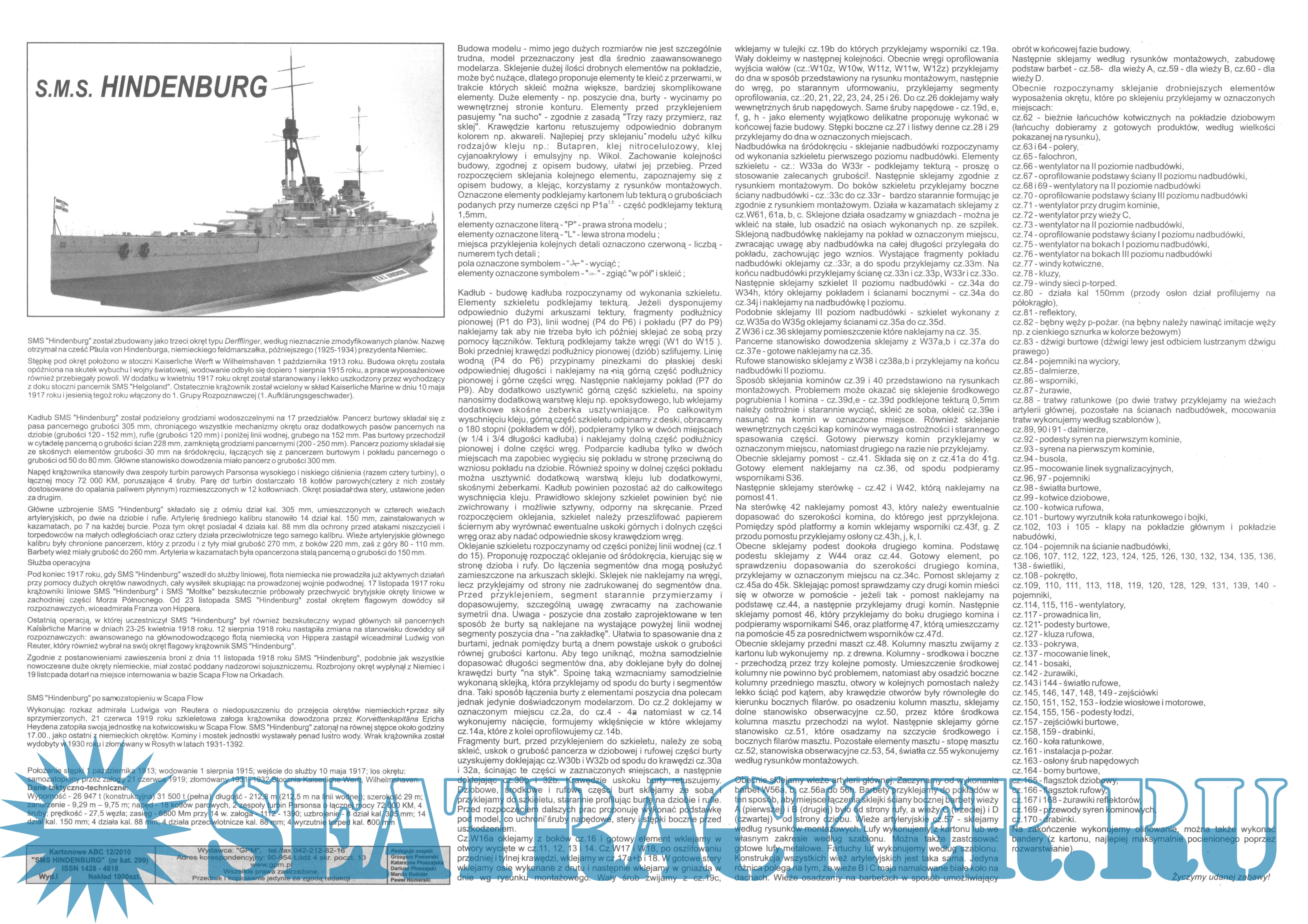 Описание: 31 лист цветных выкроек и описаний для создания бумажной модели немецкого линкора SMS Hindenburg в масштабе 1:200
