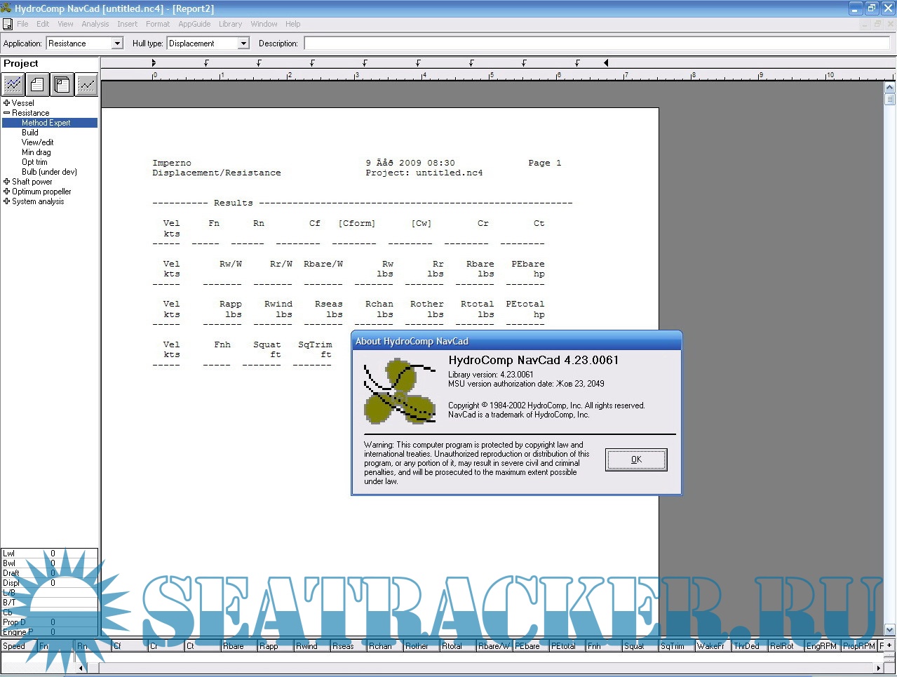 NavCad 2009, PropCad 2005, PropExpert 2005 Release year: 2005/2009 Version: v.9.05.0132, v.4.40.0138, v.5.12.0067 Developer: HydroComp Inc. Platform: Windows NT, 2000, XP 64-bit OS compatibility: unknown System requirements: PI 133, (64 Mb for Win NT), Win2000, Vista, 7 Localization: English Crack: Included Description: NavCad is a software package for complete parametric analysis of a vessel’s resistance and propulsion performance. NavCad calculations go far beyond the blind application of individual formulas; they allow the designer to fully model and analyze the equilibrium state of the hull–engine–propulsor–water system under various operating conditions. The analyzed system includes the hull, appendages, propeller, and engine (i.e. resistance, power, thrust, and torque), as well as various “non-vessel” effects (waves, wind, shallow water effects, towing/pushing modes, etc.). PropCad is software for geometric modeling of propellers. It provides tools for automatic generation of 2D drawings, 3D visualization, data construction, calculation of geometric properties, and CAD/CAM file export. PropExpert is an excellent software tool for the selection and performance analysis of propulsion systems for yachts, boats, tugs, fishing vessels, and patrol craft. This program was developed specifically for the market of engine and propeller manufacturers and suppliers. PropExpert is based on advanced NavCad technologies, but compared to NavCad it is much easier to learn and use. In PropExpert, you can start working with only general vessel data. At the same time, the program’s functionality remains at the same high level, including unique “expert functions” that help the user select the correct propeller. Thanks to its powerful calculation and analysis capabilities, PropExpert has gained worldwide recognition in the field of engine, gearbox, and propeller selection. Additional information: More detailed descriptions of the software in Russian are available at http://www.marintech.ru && https://www.hydrocompinc.com