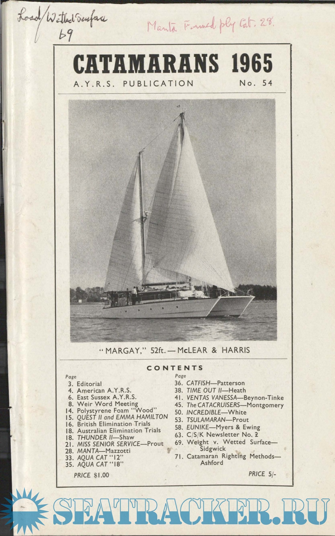 A.Y.R.S. Publication No.052 - Trimarans 1964 - 1965 [1965, PDF]