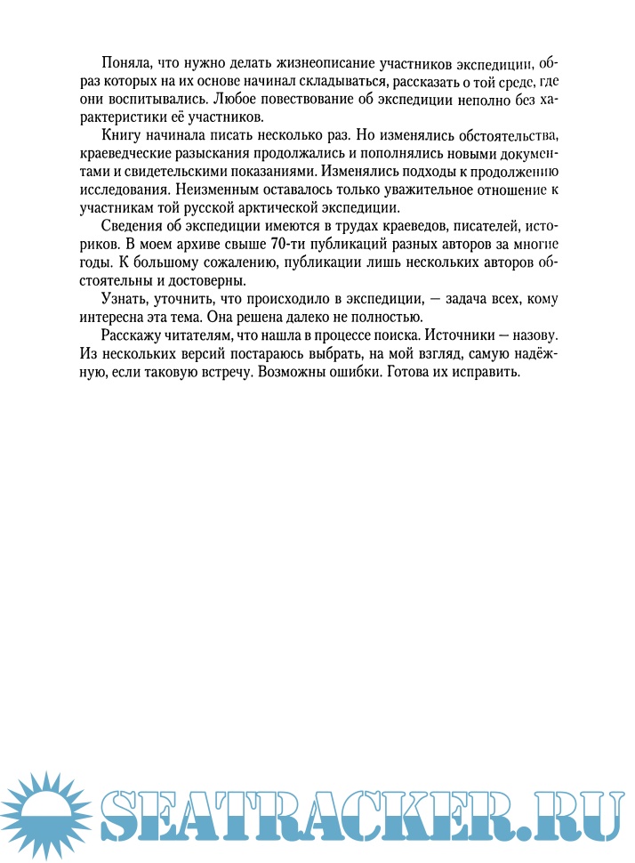 исследователей Арктики — уникальна во всех смыслах: историей создания, фактическим материалом, личностью автора, открывающимися перспективами для дальнейших исследований и теми отзывами, которые она снискала среди известных писателей, ученых и журналистов. Это восстановленная с достойными внимания скрупулезностью и точностью история героического, имеющего мало аналогов в мировом мореплавании похода в Арктику на шхуне «Святая Анна».