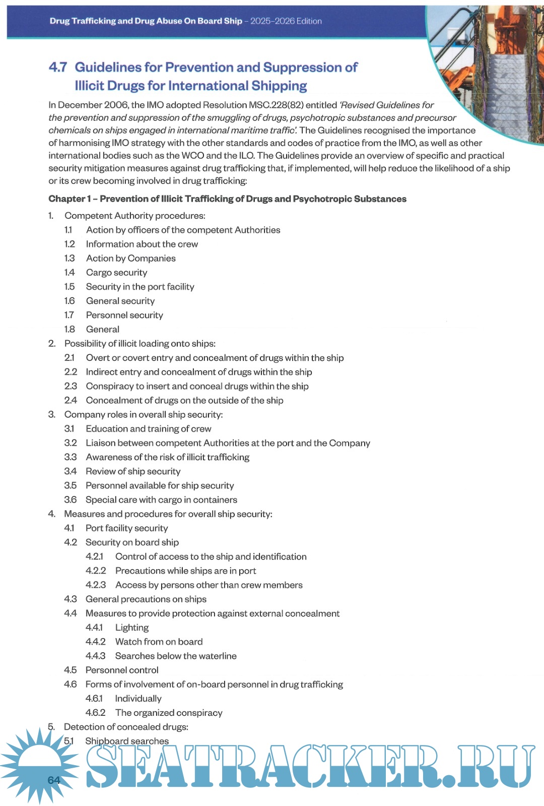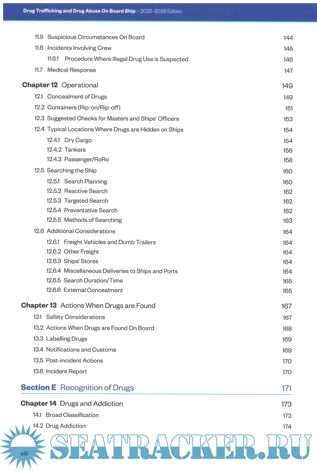 Year: 2025/2026 Language: English Author: International Chamber of Shipping (ICS) Publisher: International Chamber of Shipping Edition: 8 ISBN: 978-1-917308-37-3, 978-1-917308-38-0 Format: PDF Quality: OCR with errors Pages count: 265 Description: Drug trafficking is a huge criminal enterprise, involving enormous sums of money and a complex international network of often violent and highly organised cartels and gangs. Commercial shipping, unfortunately, can unwittingly play a significant part in the transportation of illicit drugs to the places where they are consumed. The shipping industry therefore shares a collective responsibility to assist in com batting this illegal traffic. This requires shipping companies, and ships' crews, to be constantly aware of the possibility that ships, and the cargo they carry, may be used as a cover for drug smuggling. This is also a matter of enlightened self-interest. In the event that illegal drugs are found on board a ship by local customs or law enforcement agencies, companies and seafarers may potentially be exposed to huge financial fines or penalties, or even the risk of imprisonment. Drug abuse also presents a serious threat to ships' crews, compounded by the direct connection between intravenous drug use and its associated health risks. Apart from the obvious impact of any illicit drug use on seafarers' health, it affects fitness for duty and compromises the safety of the ship. It also exposes crews to the wider consequences of being associated with serious criminal activity, a particular danger in those parts of the world where the strict rule of law cannot be taken for granted or where the death penalty for drug trafficking still applies. These Guidelines are intended to help shipping companies, Masters and ships' officers to combat drug trafficking and to recognise some of the signs of possible drug use among crew members. Cooperation with customs authorities is essential in fighting drug trafficking and, to that end, the International Chamber of Shipping (ICS) and the World Customs Organization (WCO) signed a Memorandum of Understanding more than 30 years ago on the principles of such cooperation. The International Conference on Drug Abuse and Illicit Trafficking, held under UN auspices in 1987, welcomed the adoption of such agreements and called upon organisations such as ICS to prepare "standards or codes of conduct ... with a view to curbing the illicit traffic in drugs". ICS, in collaboration with the WCO, drew up Guidelines setting out some of the ways in which shipping companies and customs authorities can cooperate, and the current edition of these Guidelines supplements this initial advice with more practical information, updated to reflect recent developments. The latest edition of these Guidelines also includes a section on the implications of cyber risks for drug trafficking. In the preparation of the current and previous editions of these Guidelines, ICS has sought advice from several sources. Particular acknowledgement is made to the UN Office on Drugs and Crime in Vienna, the WCO, and customs authorities in the United Kingdom, the United States and Hong Kong, China.