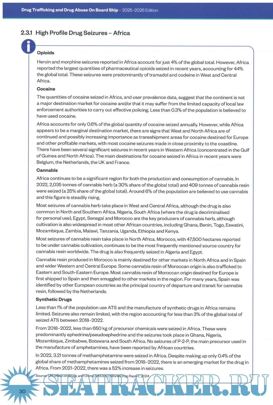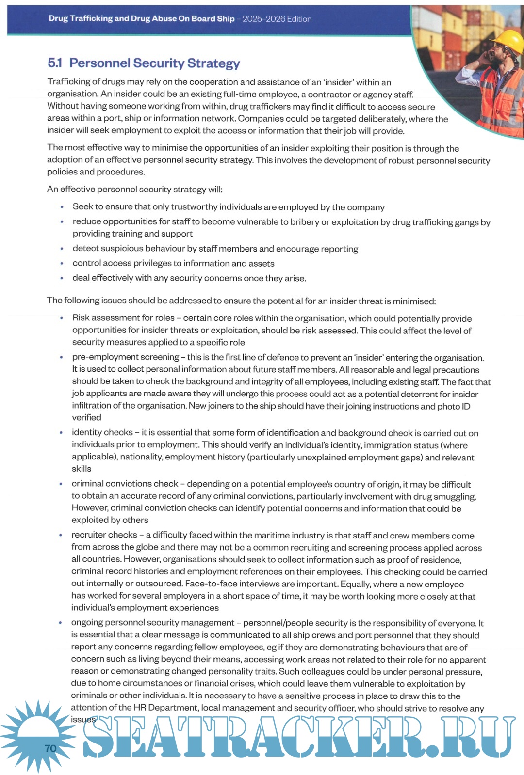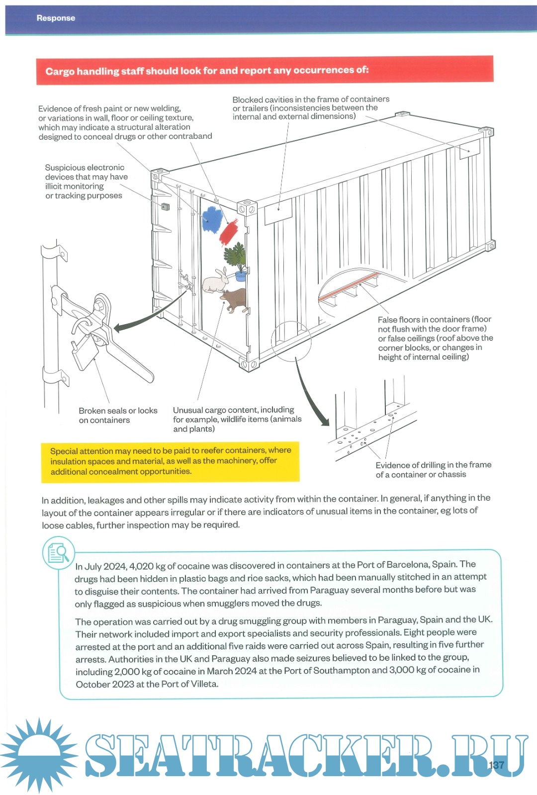 Description: Drug trafficking is a huge criminal enterprise, involving enormous sums of money and a complex international network of often violent and highly organised cartels and gangs. Commercial shipping, unfortunately, can unwittingly play a significant part in the transportation of illicit drugs to the places where they are consumed. The shipping industry therefore shares a collective responsibility to assist in com batting this illegal traffic. This requires shipping companies, and ships' crews, to be constantly aware of the possibility that ships, and the cargo they carry, may be used as a cover for drug smuggling. This is also a matter of enlightened self-interest. In the event that illegal drugs are found on board a ship by local customs or law enforcement agencies, companies and seafarers may potentially be exposed to huge financial fines or penalties, or even the risk of imprisonment.