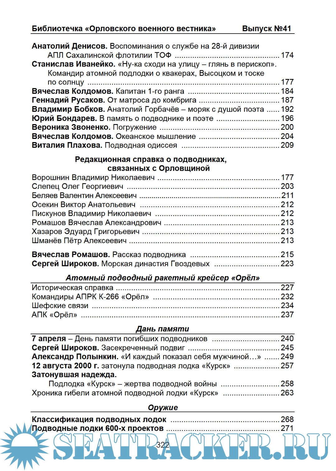 Описание: Специальный выпуск военно-исторического журнала «Орловский военный вестник» с 2016 года выходит в новом исполнении: Библиотечка «Орловского военного вестника».Этот выпуск посвящён 120-летию подводного флота России.Читатель сможет ознакомиться с историей возникновения и развития подводного флота России–СССР–Российской Федерации, с той ролью, которую исполняет подводный флот в современном противостоянии сверхдержав.Конечно же, подробно мы остановимся на судьбах подводников – уроженцев Орловщины и тех, кто после службы предпочёл связать свою судьбу с городом Орёл.