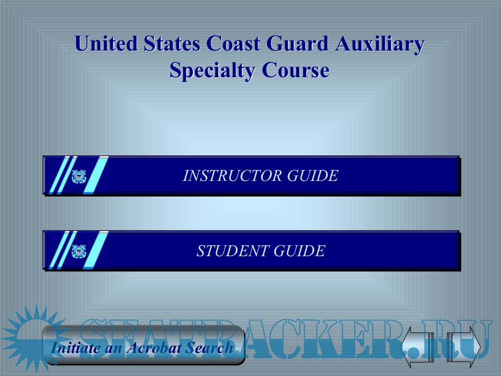 Year: 1999 Language: english Author: USCG Publisher: USCG Edition: 1999 Format: PDF Quality: eBook Pages count: 472 ; 359 Description: Contains: Instructors' Guide (472 pag.) Student Text and Study Guide (359 pag.) The USCG Auxiliary Navigation Specialty Course is divided into two distinct and separate, yet interdependent, parts. The first part, AUXNAV A, is the general knowledge, or theoretical, part. The second, AUXNAV B, is the practical, or application, part. The first involves almost no chart work; the second is totally chart work. The first part does involve plotting with maneuvering boards and serves the dual purpose of providing practice in the use of the boards as well as training in the use of polar coordinates to determine location. AUXNAV A is a prerequisite for AUXNAV B, and both must be successfully completed for a member to be designated a Navigation Specialist.