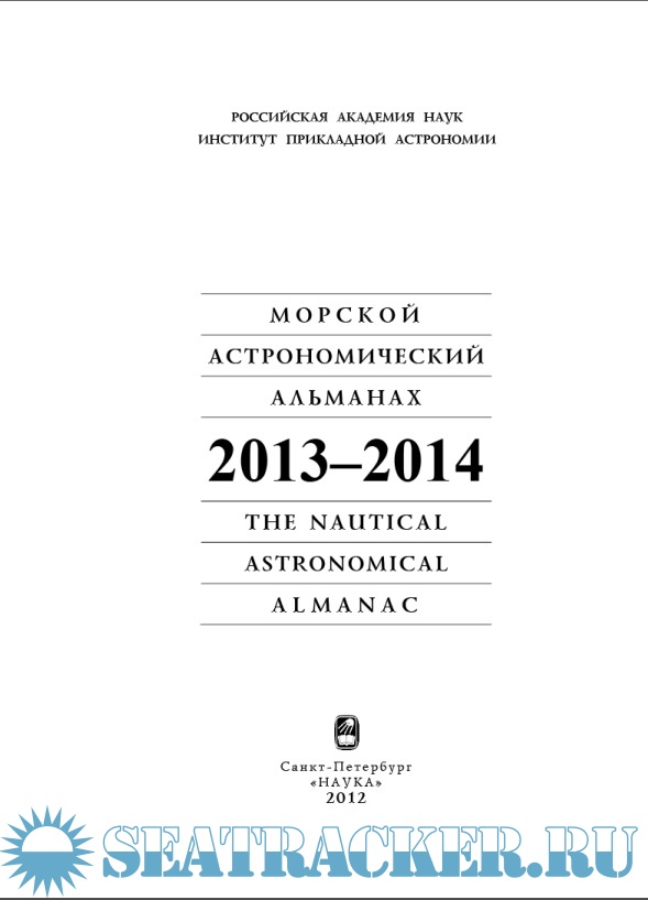 The Nautical Astronomical Almanac for the years 2013–2014 (NAA-2) has been published by the Institute of Applied Astronomy RAS since 2002. NAA-2 has the same accuracy of astronomical data as "The Nautical Astronomical Yearbook". The Almanac contains daily and additional tables, the description of the use of the marine sextant, the celestial globe and star charts. NAA-2 includes detailed algorithms of solving the astro-navigational tasks, such as compass error calculations and determination of a vessel’s position by stars and the Sun. The Explanation and part of auxiliary tables are given in both Russian and English versions. NAA-2 has been recommended for use of deck officers by Department of Navigation Safely of the State Marine Fleet Service of Ministry of Transport of the Russian Federation.