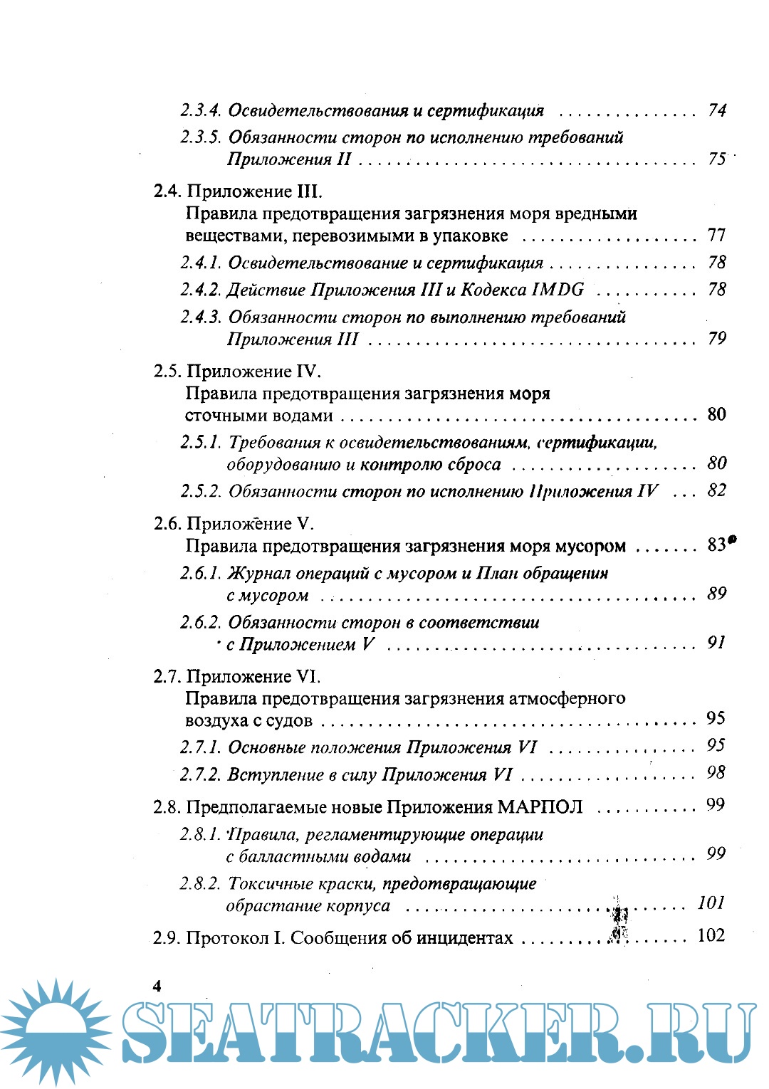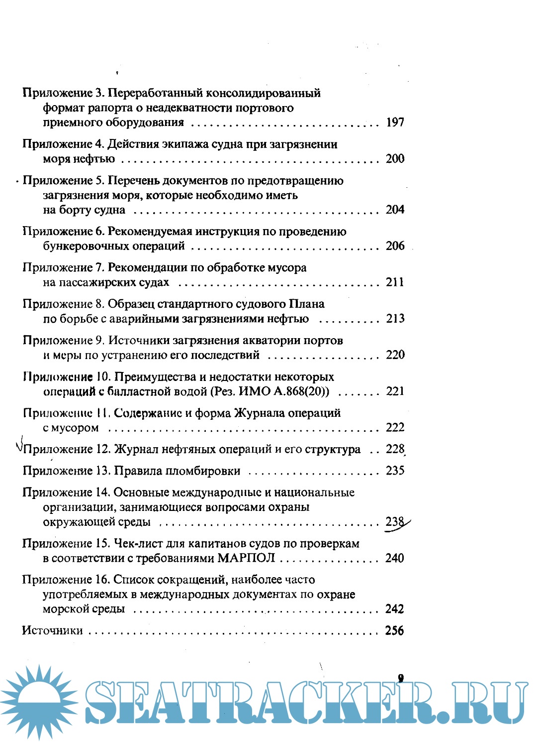 • Приложение 5. Перечень документов по предотвращению загрязнения моря, которые необходимо иметь на борту судна .....................................204