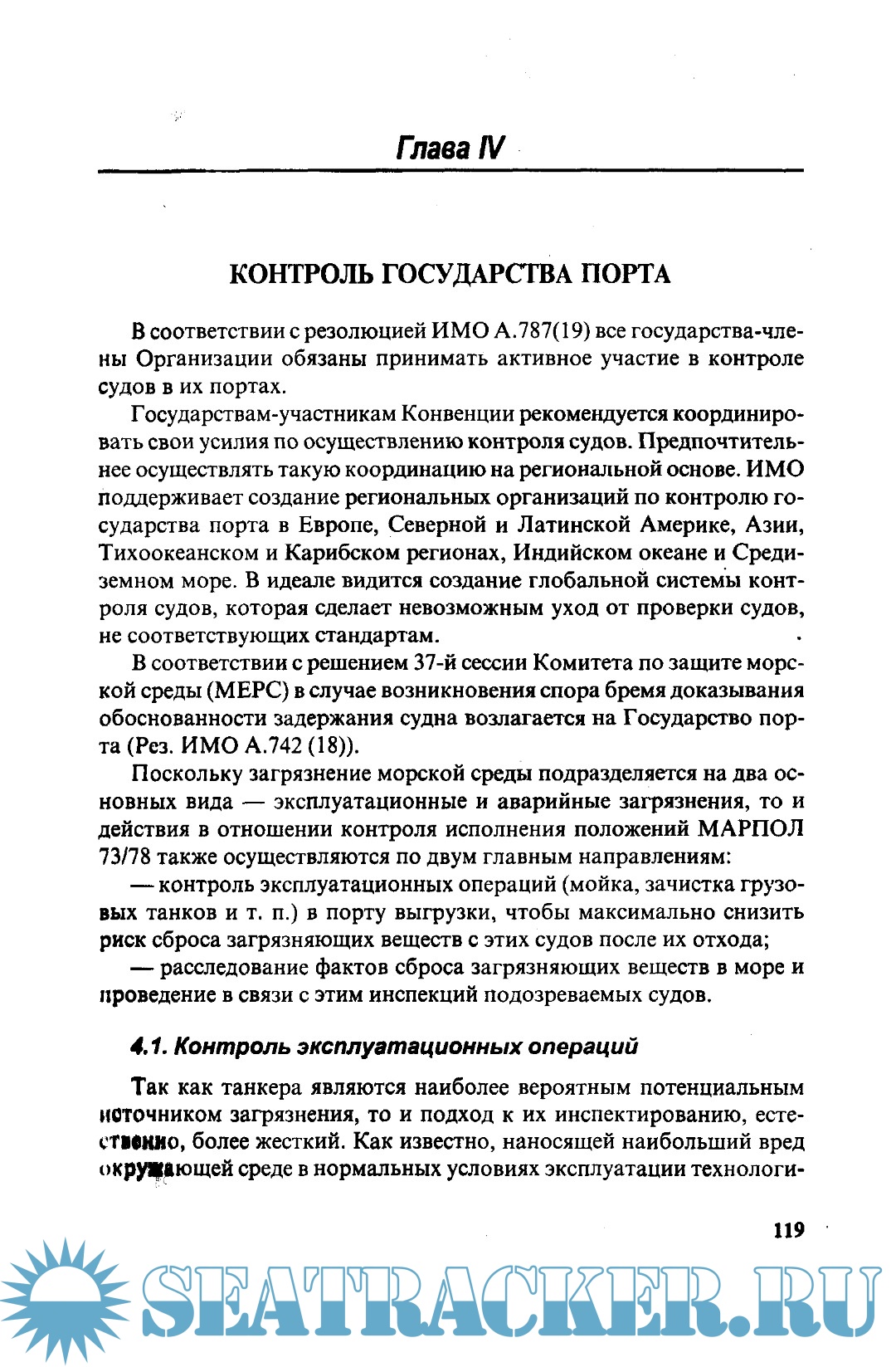 годов, вызванным в большой степени энергетическим кризисом и закрытием Суэцкого канала, стало очевидным, что Конвенция OILPOL-54 больше не удовлетворяет изменившимся условиям морского судоходства, так как возросло количество аварий и усугубились их последствия. Учитывая это, в 1969 г. Ассамблея Международной Морской Организации (ИМО) приняла решение собрать в 1973 г. новую Конференцию. Конвенция, принятая этой Конференцией, несла в своей основе принципиально новый подход к защите морской среды: эта Конвенция учитывала не только нефть, но и все остальные факторы загрязнения моря с судов (Конвенция по защите моря от загрязнения отходами с берега была принята годом раньше).'В том же, 1969 году, принимаются еще две важные конвенции: "СГвмеша-тельстве в открытом море в случаях аварий, приводящих к загрязнению нефтью" и "О гражданской ответственности за ущерб от загрязнения нефтью". Обе эти конвенции вступили в силу в 1975 году. Первая из них предоставляет право принимать в открытом море необходимые меры для предотвращения, уменьшения или устранения опасности загрязнения моря и побережья вследствие морской аварии, вторая устанавливает ответственность собственника судна за ущерб от загрязнения, который причинен утечкой или сливом нефти с судна в результате инцидента. В дополнение к этим двум конвенциям в декабре 1971 г. была принята еще одна — "О создании Международного Фонда для компенсации ущерба от загрязнения нефтью". Она вступила в силу в 1978 г. и устанавливает дополнительное возмещение ущерба потерпевшим от загрязнения, а гакже переносит часть расходов по возмещению ущерба с судовладельца на «бонд.