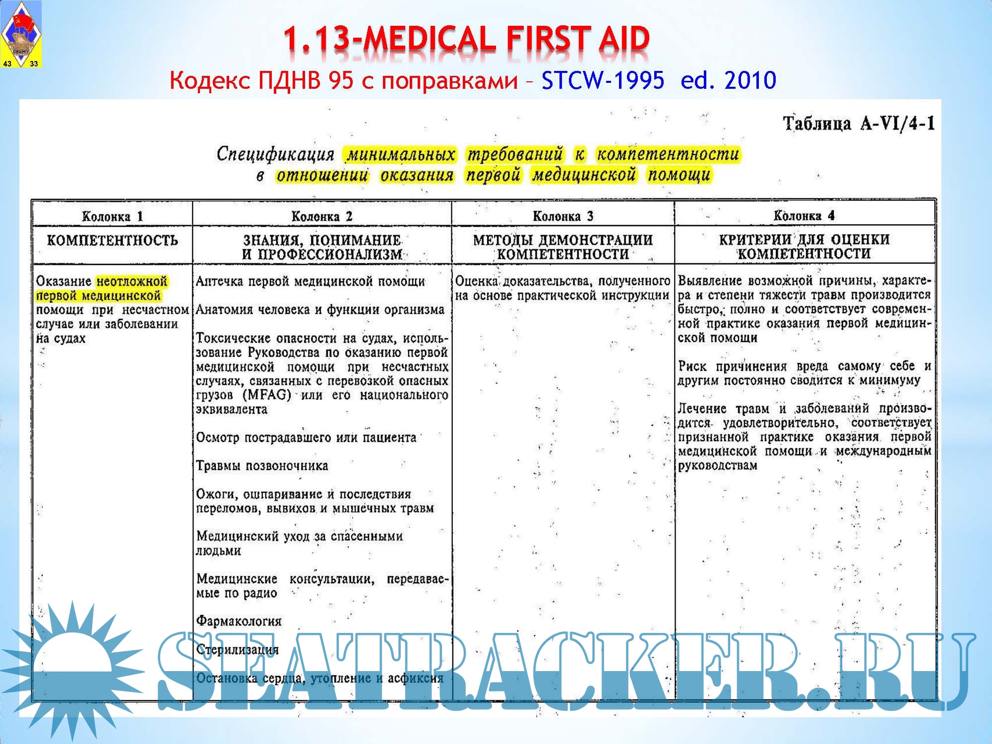 13 1.13 РАЗДЕЛ A-VI-4 STCW 1978 RUSS 2010 5
