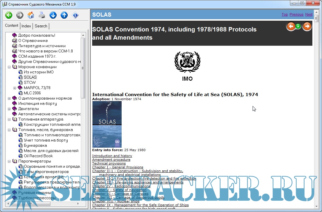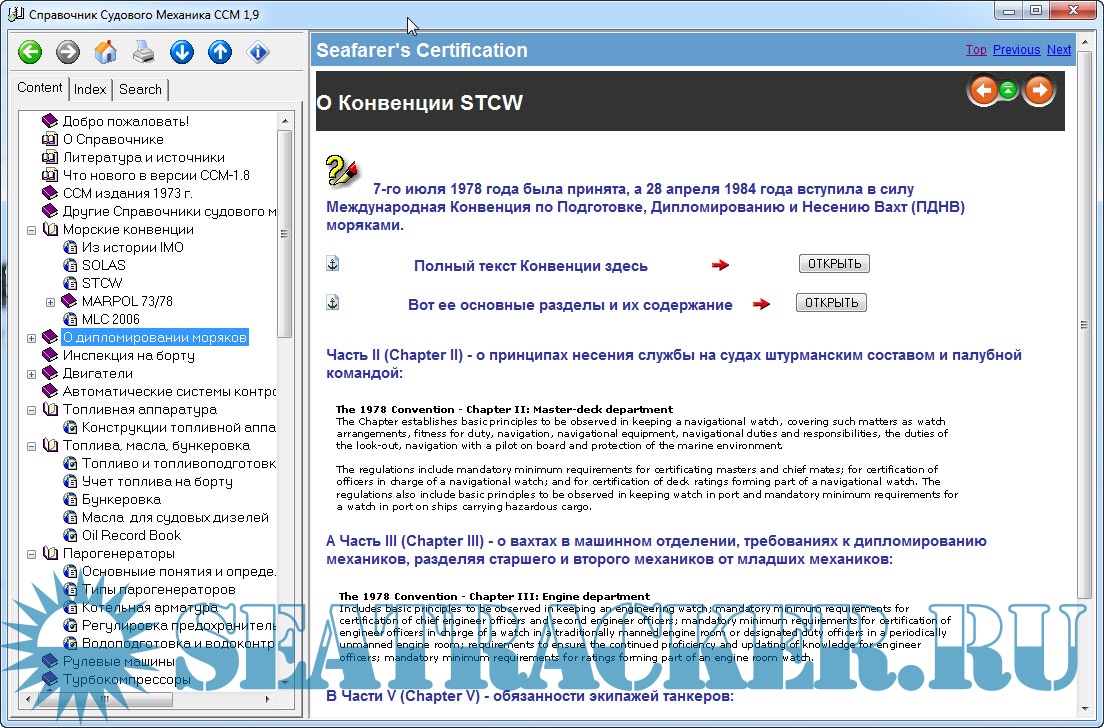 Описание: В Справочнике собрана, систематизирована, оцифрована и представлена в виде электронной книги информация о конструкциях, обслуживании и диагностике механизмов современного судна, нормативные документы, материалы международных конвенций и просто полезная информация - всего более 4 Гб.