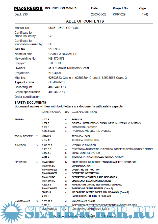 MacGregor Crane Type: GL4528-2 Instruction Manual - MacGREGOR [2003, PDF]