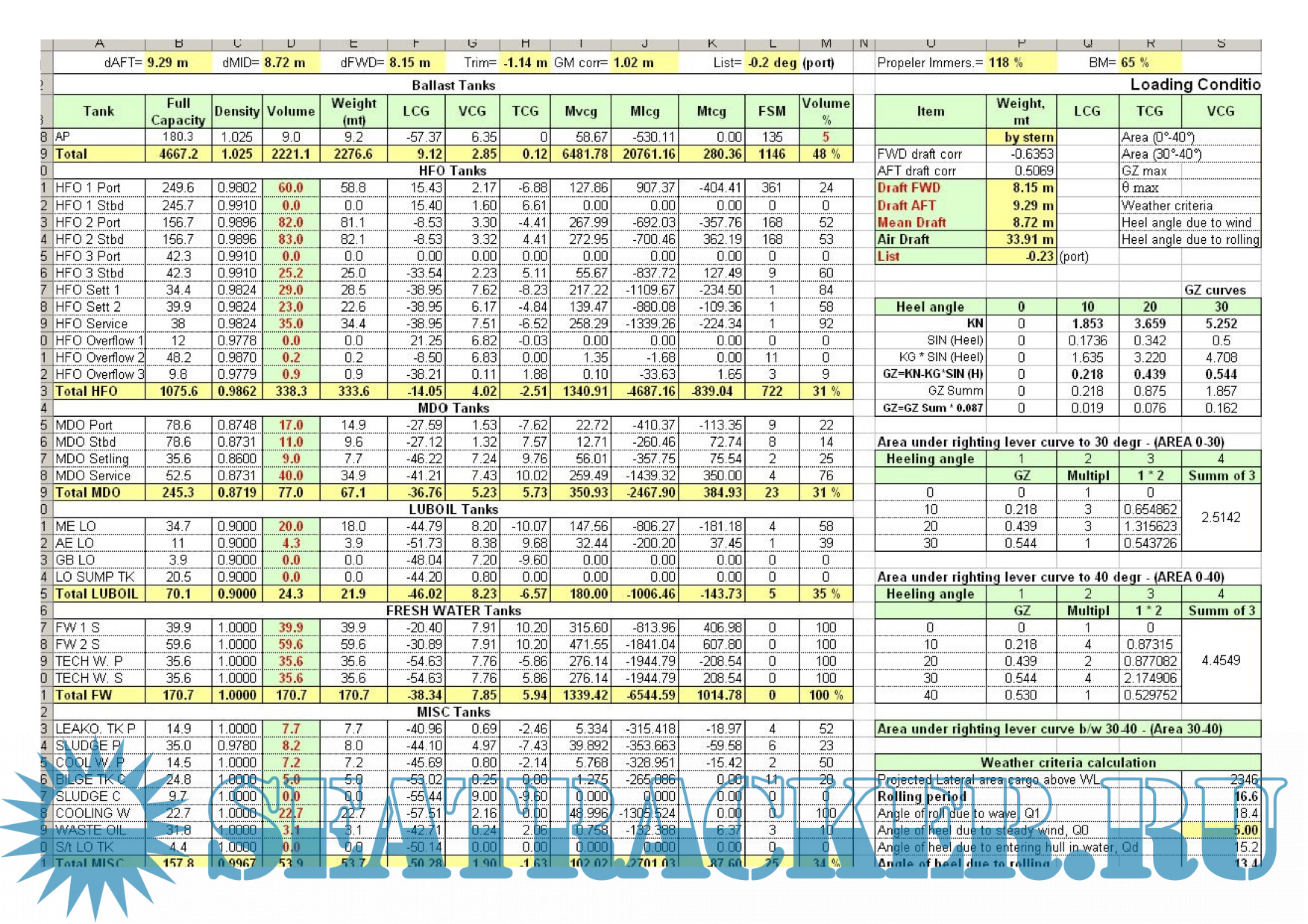 Description: Программа для расчета остойчивости контейнеровоза в Excel. Делал под свое судно. Программа загружает EDI файл и полностью раскидывает контейнера по беям, считает полностью остойчивость.
