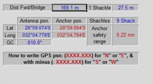 Description: This useful file can be used for determining such important parameters of anchoring as real position of anchor on the bottom and Anchor safety range. Please press Thank you Button.