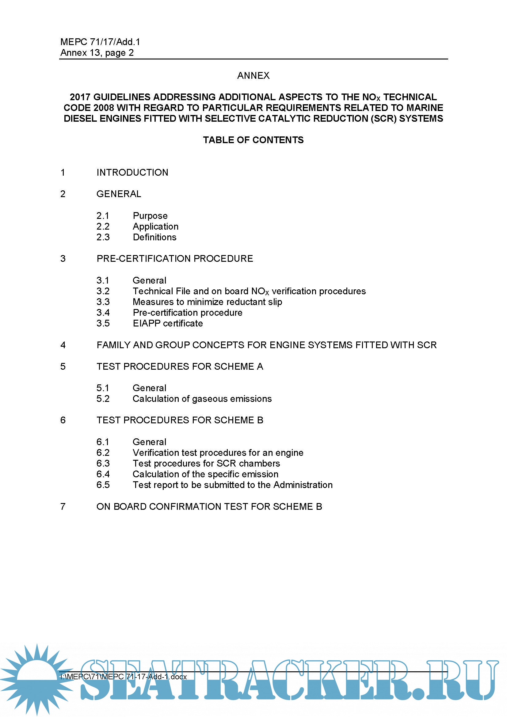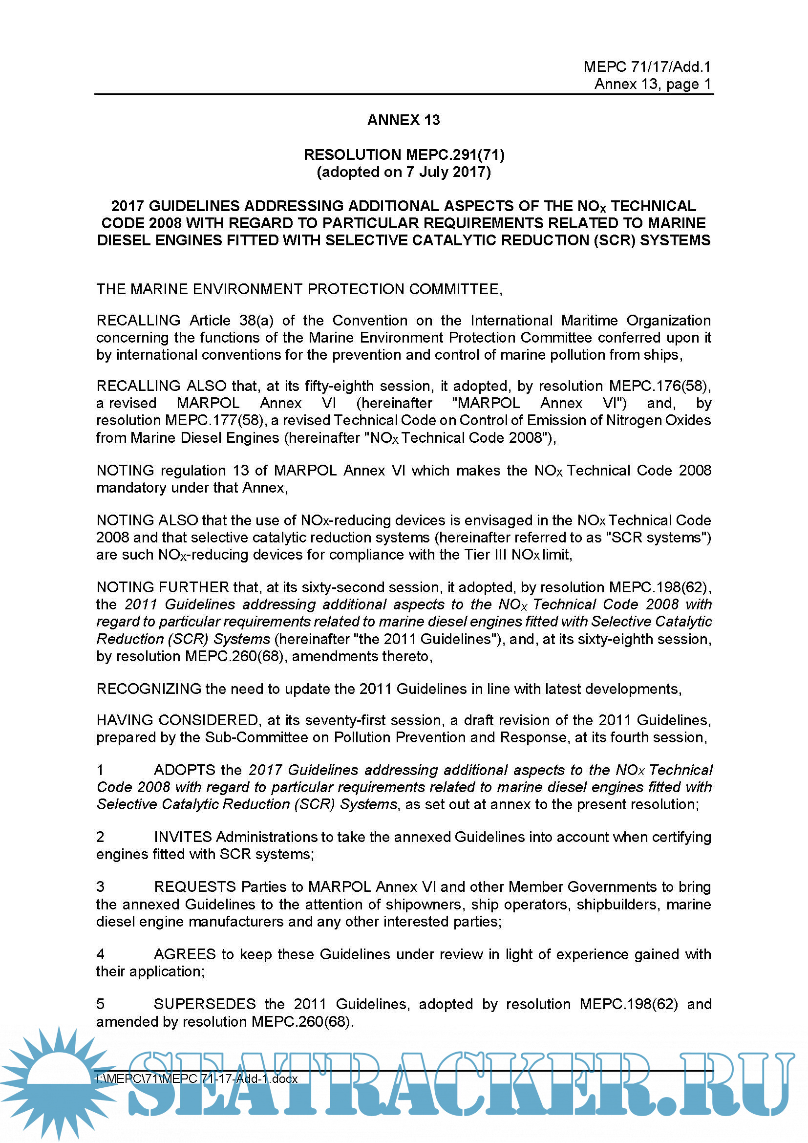 Guidelines Addressing Additional Aspects Of The Nox Technical Code 2008 With Regard To Particular Requirements Related To Marine Diesel Engines Fitted With Selective Catalytic Reduction (SCR) Systems