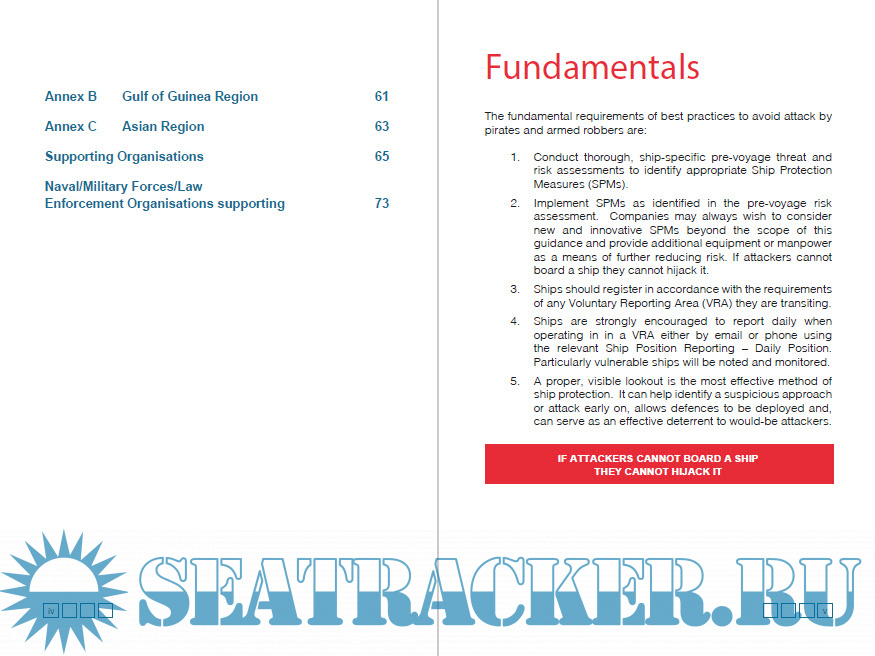 Description: The purpose of this guidance is to protect seafarers, the ship and cargo and, to facilitate threat and risk assessment and planning for voyages transiting areas where the threat of attack by pirates and armed robbers exists.