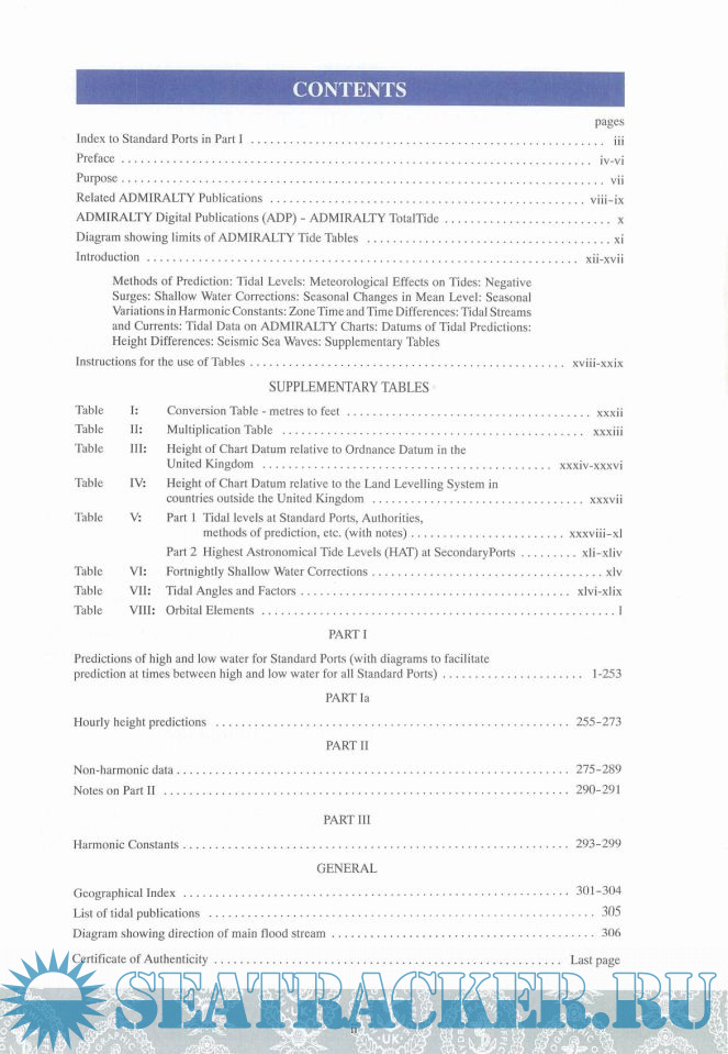The introduction deals with a number of subjects of general interest, in particular the effect of meteorological conditions on tidal heights; following the introduction are a number of special tables and diagrams for use with the tide tables.