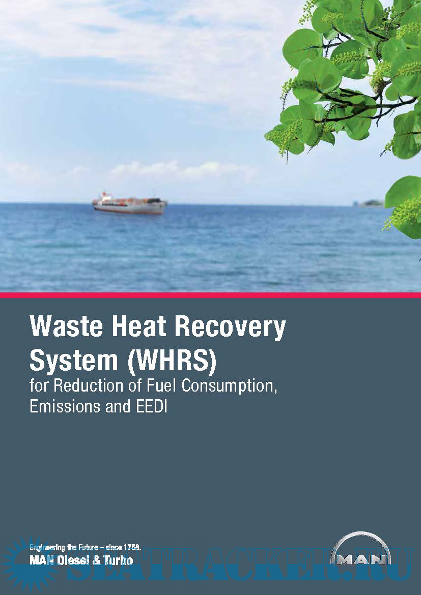 Year: 2014 Language: english Author: MAN Diesel & Turbo Genre: Technical book Format: PDF Quality: eBook Pages count: 32 Description: The increasing interest in emission reduction, ship operating costs reduction and the newly adapted IMO EEDI rules calls for measures that ensure optimal utilisation of the fuel used for main engines on board ships. Main engine exhaust gas energy is by far the most attractive among the waste heat sources of a ship because of the heat flow and temperature. It is possible to generate an electrical output of up to 11% of the main engine power by utilising this exhaust gas energy in a waste heat recovery system comprising both steam and power turbines, and combined with utilising scavenge air energy for exhaust boiler feed-water heating.