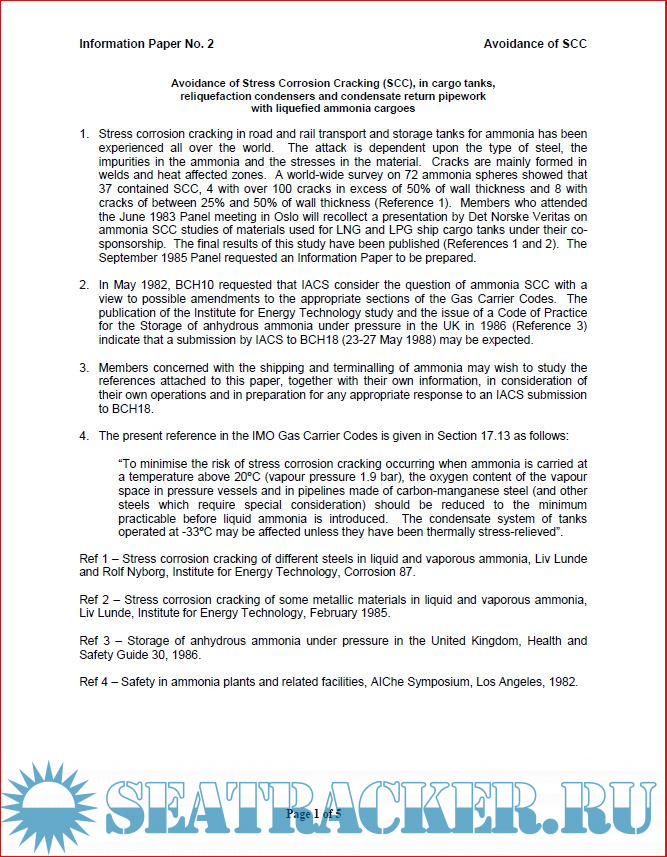 SIGTTO Information Paper no. 2 - Avoidance of Stress Corrosion Cracking (SCC) in Cargo Tanks, Reliquefaction Condensers And Condensate Return Pipework With Liquefied Ammonia Cargoes