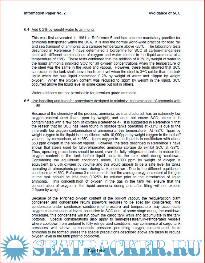 Description: SIGTTO's Information Paper No. 2 was published in November 1988 and included recommendations for avoidance of stress corrosion cracking in cargo tanks, reliquefaction condensers and condensate return pipework With Liquefied Ammonia Cargoes.