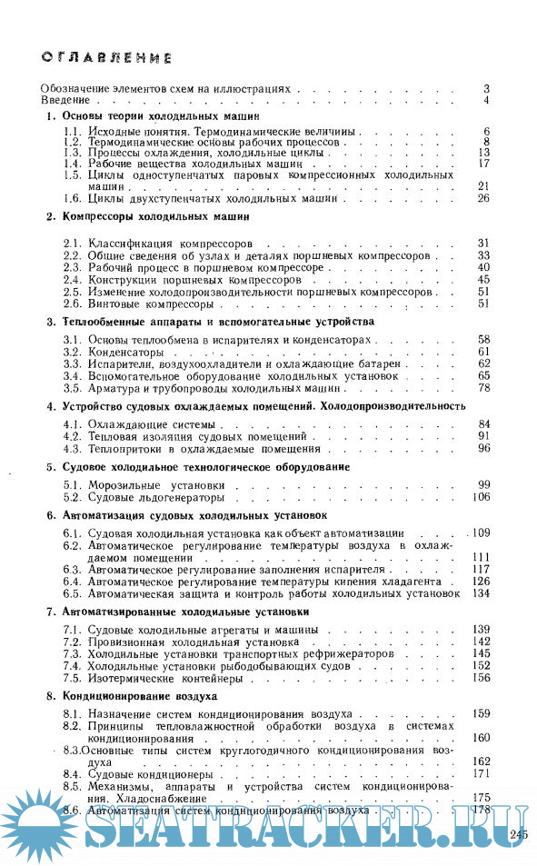 Описание: Рассмотрены устройство, принцип работы, основы автоматизации, правила технической эксплуатации и ремонта холодильных машин рефрижераторных и рыбопромысловых судов, газовозов, крупных пассажирских и научно-исследовательских судов. Приведены сведения по провизионным холодильным установкам и системам кондиционирования воздуха.