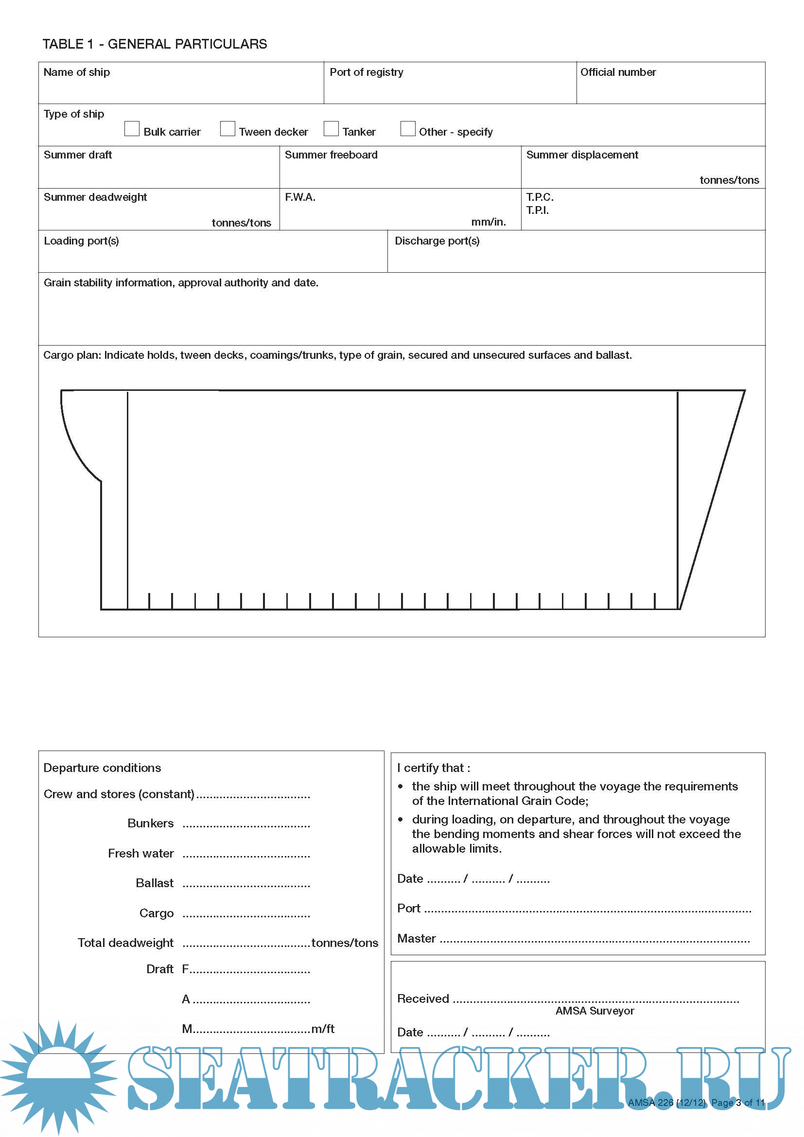3. Instructions to Master for Loading Grain in Australian Ports with Calculation form of Stability for Ships Carrying Bulk Grain