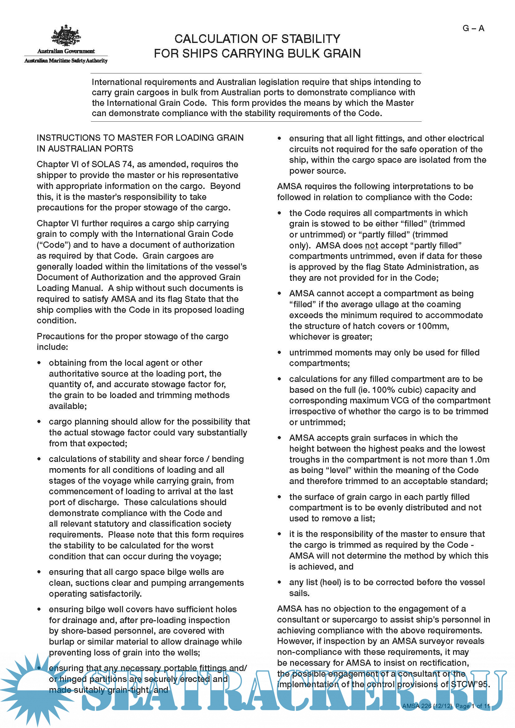 AMSA Grain Stability Calculation Forms & more - AMSA [201?, PDF]