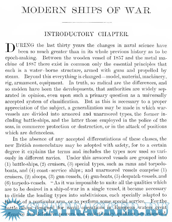 Description: After many years of neglect, the people of this country have awakened to the necessity of creating a modern fleet. Frond as they were of the Navy's achievements in the past, they failed for a long time to exhibit any interest in its present or future, and met all claims for its re-establishment by a denial of its usefulness, or by a lazy optimism of indifference which smilingly put the question by. Indeed, at one time, the popular solicitude disappeared completely, and outside of the service there was manifested neither an alarm at its degeneracy nor an appreciation of the dangers this made possible. With an apathy inexplicable upon any rational grounds, the notes of warning sounded by experts were unheeded, and the law-makers contented themselves by pinning their faith to what they called " the creative possibilities of American genius." They accepted this fallacy as a fact, they made this phrase a fetich, and with a fatuous hope believed it could, by some occult inspiration, in the event of sudden, sharp, and short war, save them from the fighting-machines which twenty years of tireless experiment had perfected abroad. In the end, by a neatly balanced policy of pride and folly, the Navy was exhausted almost to dissolution. Then Congress lazily bestirred itself to action, and prescribed as a remedy three unarmored cruisers and a dispatch-boat.