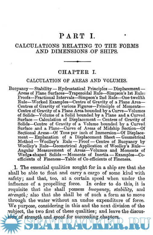 Description: In offering this work to Naval Architects, it is hardly necessary for me to say that I have been indebted to those who have written before me for a large proportion of the ideas which it contains. It would, indeed, be impossible to write usefully upon a science which has been brought to its present state by the contributions of so many minds without being under such obligations.