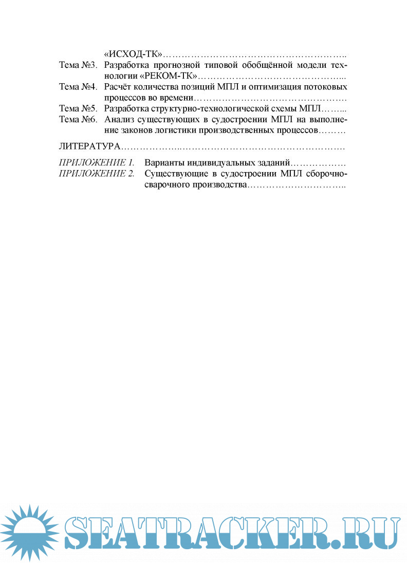 Год выпуска: 2004 Язык: русский Автор: Кулик Ю.Г. Жанр: Учебное пособие Издательство: ГОУ ВПО ВГАВТ Формат: PDF Качество: Отсканированные страницы Количество страниц: 108 Описание: В учебном пособии рассмотрены теоретические и методологические основы логистики производственных процессов применительно к судостроению. Изложена методика выбора организационно-технологической схемы микрологистической подсистемы «Механизированная поточная линия». Даны указания к лабораторному практикуму по применению основных законов логистики при проектировании механизированных поточных линий сборочно-сварочного производства. Учебное пособие предназначено для студентов кораблестроительного факультета (специальности 140100) дневной и заочной форм обучения.
