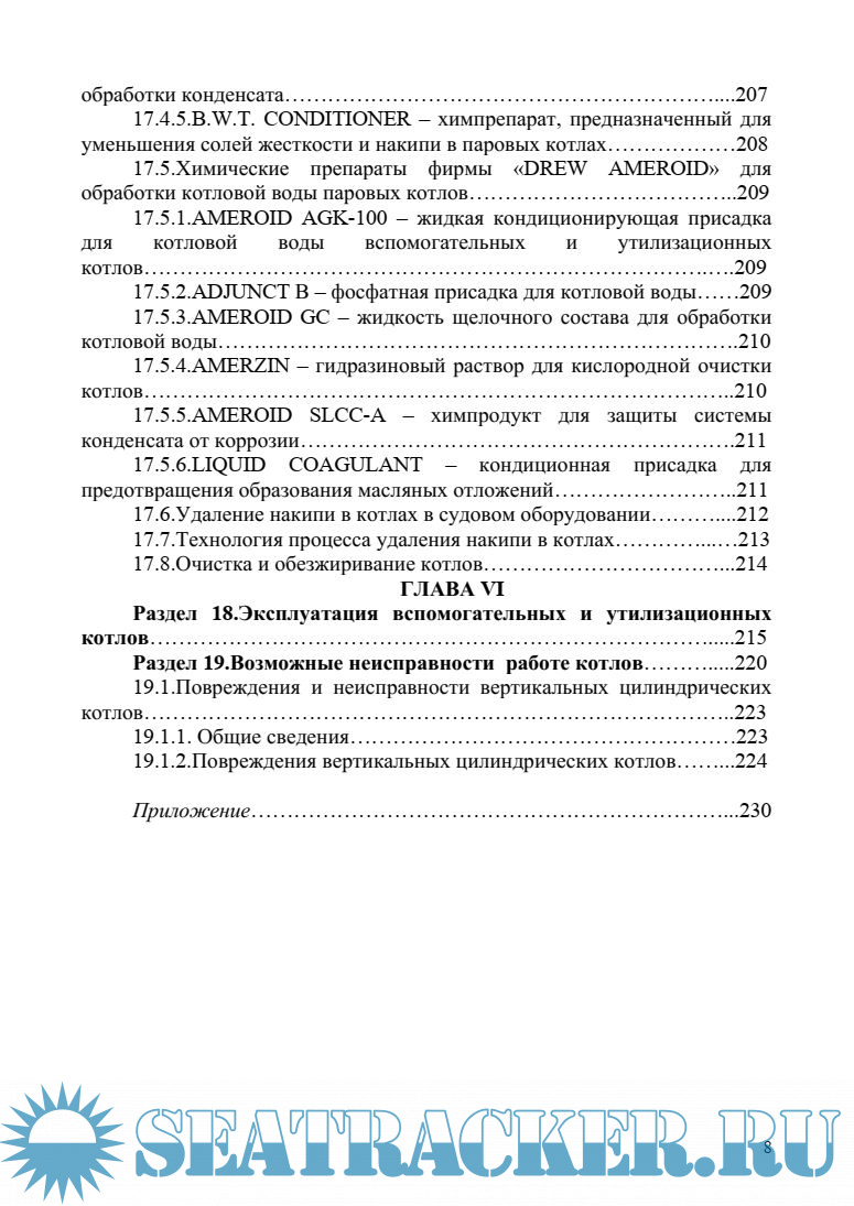 Описание: Предлагаемое читателю справочное пособие посвящено конструктивным особенностям и эксплуатационным характеристикам вспомогательных, утилизационных и комбинированных котлов применяемых на морских судах. Представленный материал в достаточной степени освещает арматуру и элементы указанных котлов, водные режимы, водоконтроль, водообработку котельной и питательной воды, а также освидетельствование котлов классификационными обществами. В целом справочное пособие "Вспомогательные, утилизационные, термомаслянные котлы морских судов" является актуальным и весьма полезным для судовых механиков, позволяет дополнить имеющиеся знания и особенно важно – оперативно освоить конкретную котельную установку. Учитывая, что в данном справочном пособии рассмотрены конструкции вспомогательных и утилизационных котлов с дизельными установками, выпускающимися различными заводами-изготовителями, приведены основные данные о наиболее распространенных системах глубокой утилизации тепла выпускных газов дизелей. Оно может быть рекомендовано не только судовым механикам, но и учащимся морских учебных заведений, а также слушателям курса повышения квалификации судовых механиков.