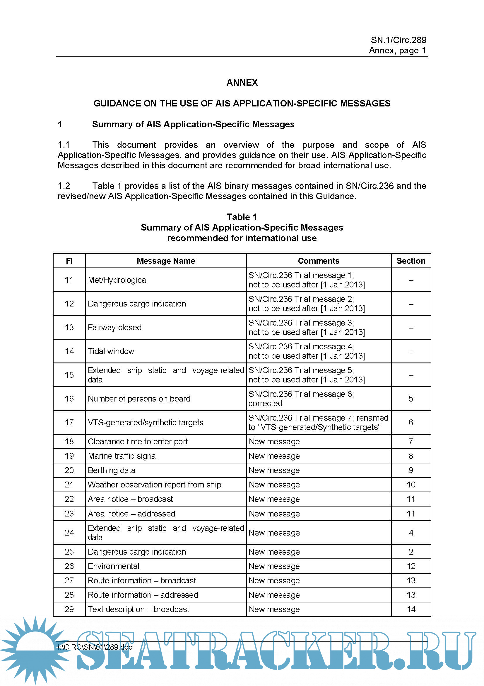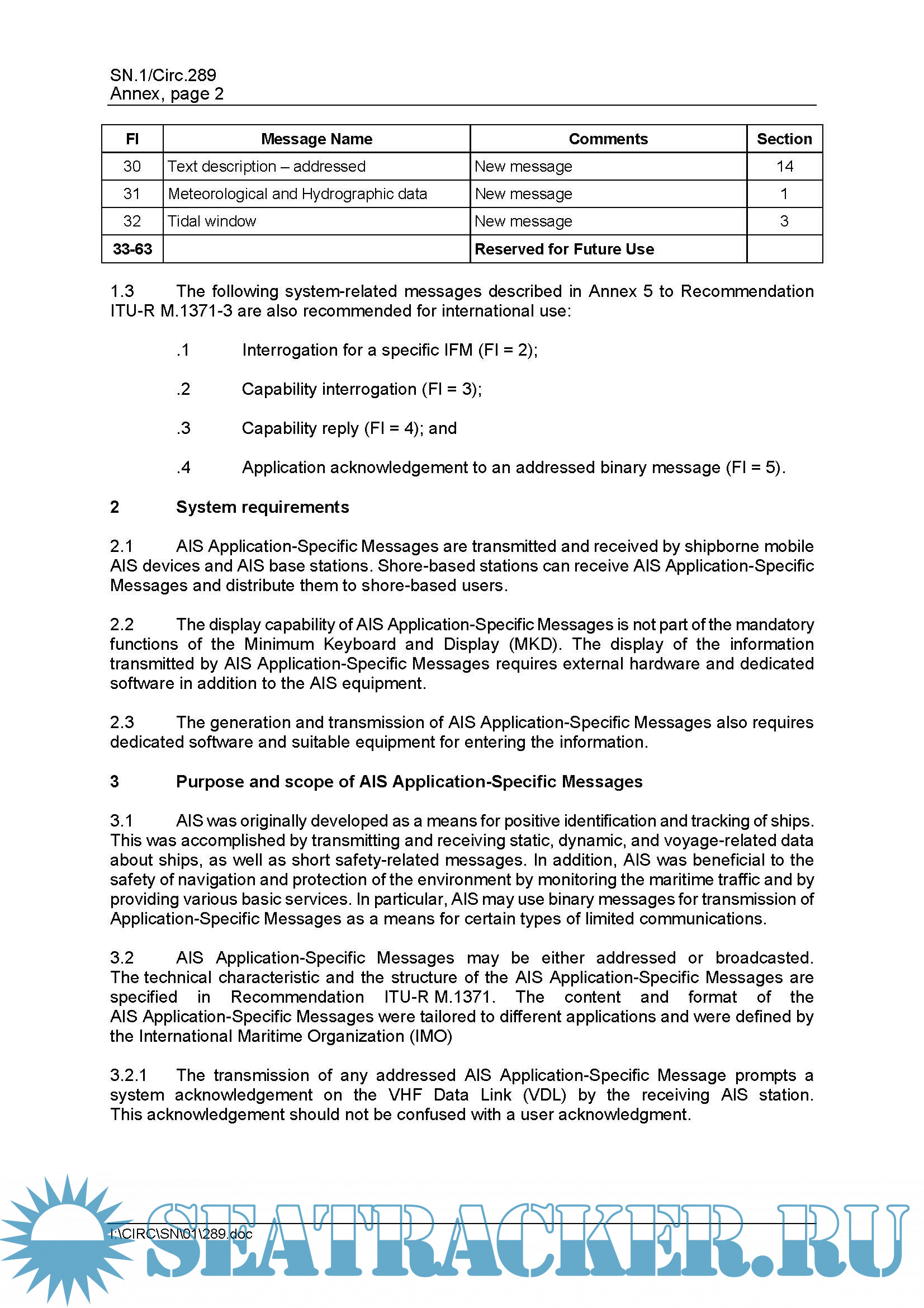Application-Specific Messages, and provides guidance on their use. AIS Application-Specific