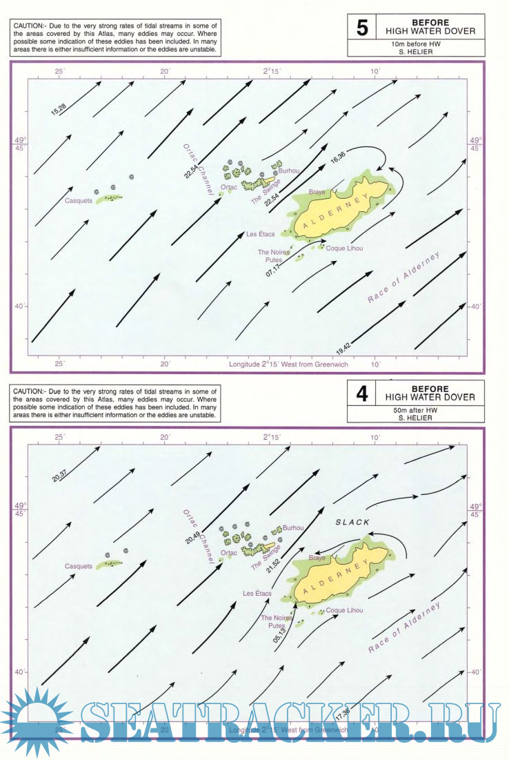 Description: This atlas contains 2 sets of 13 harts showing tidal streams at hourly intervals commencing 6 hours before HW Dover and ending 6 hours after HW Dover.