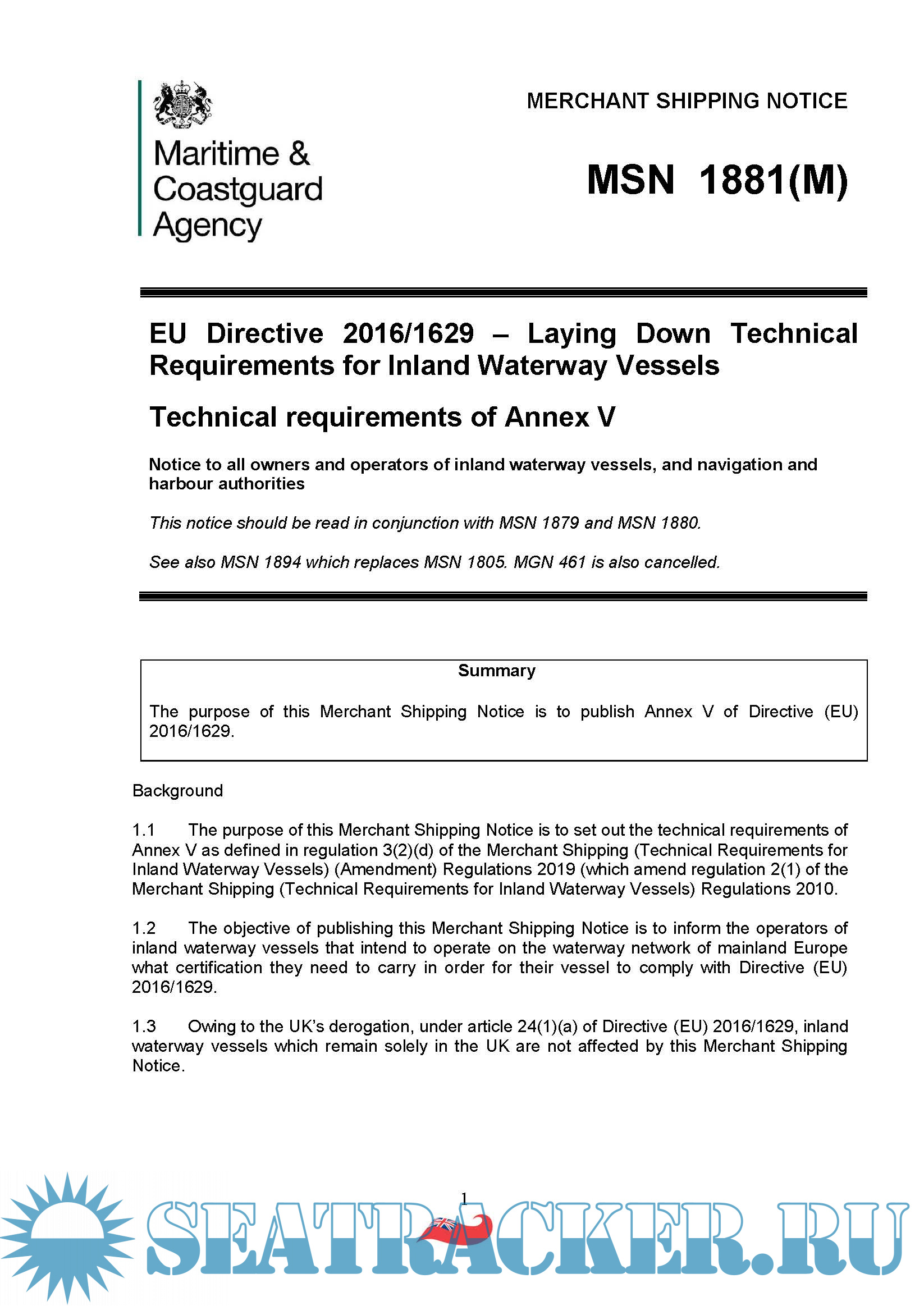 Description: The purpose of this Merchant Shipping Notice is to publish Annex V of Directive (EU) 2016/1629.