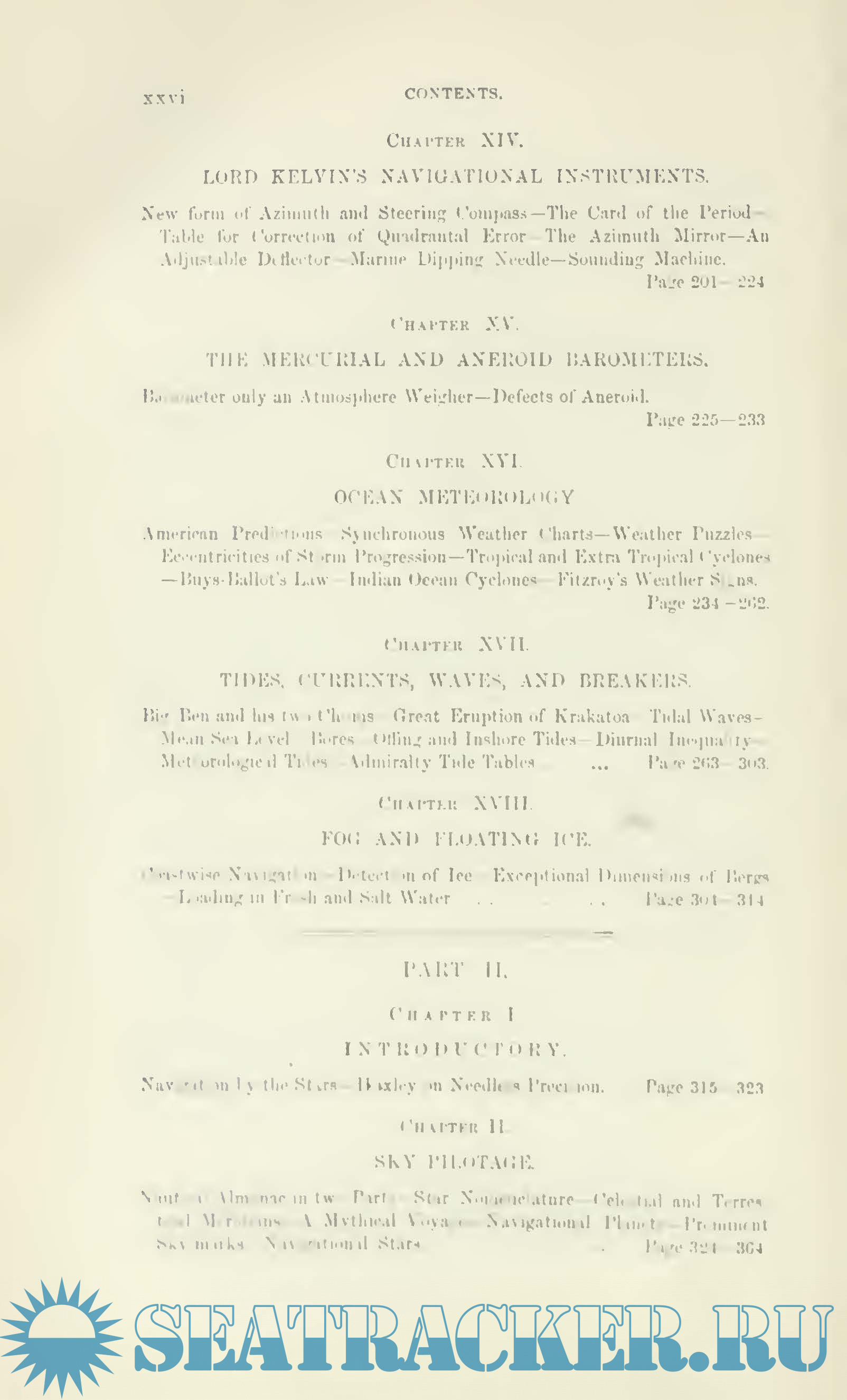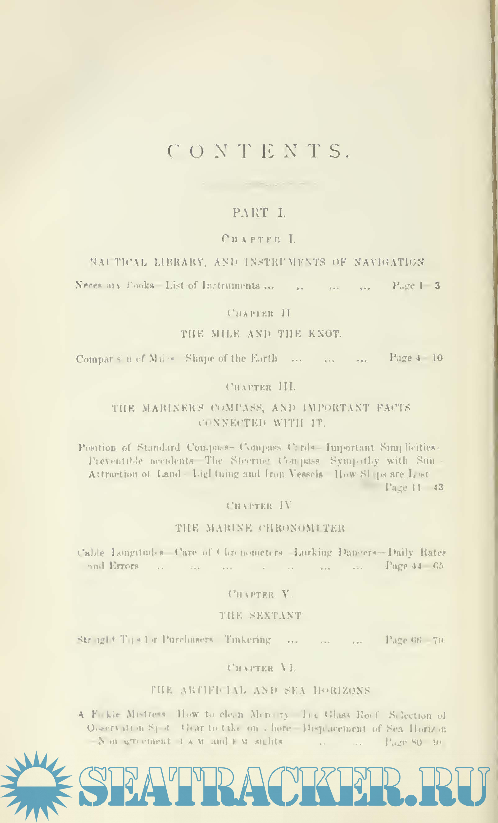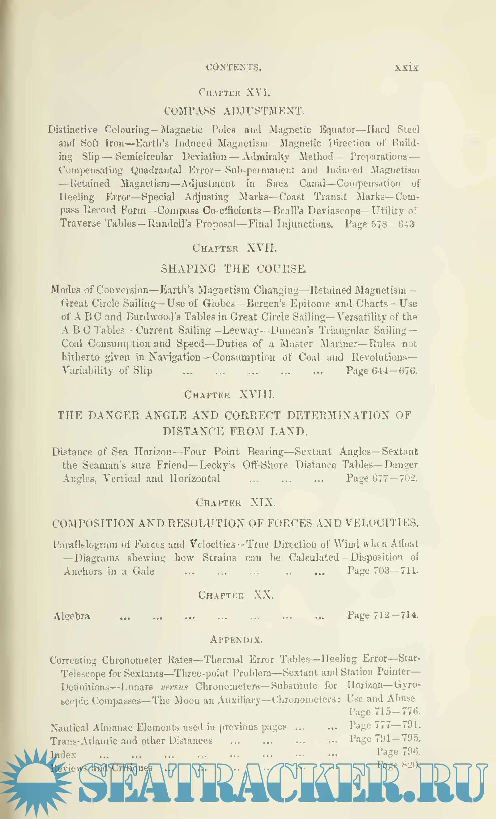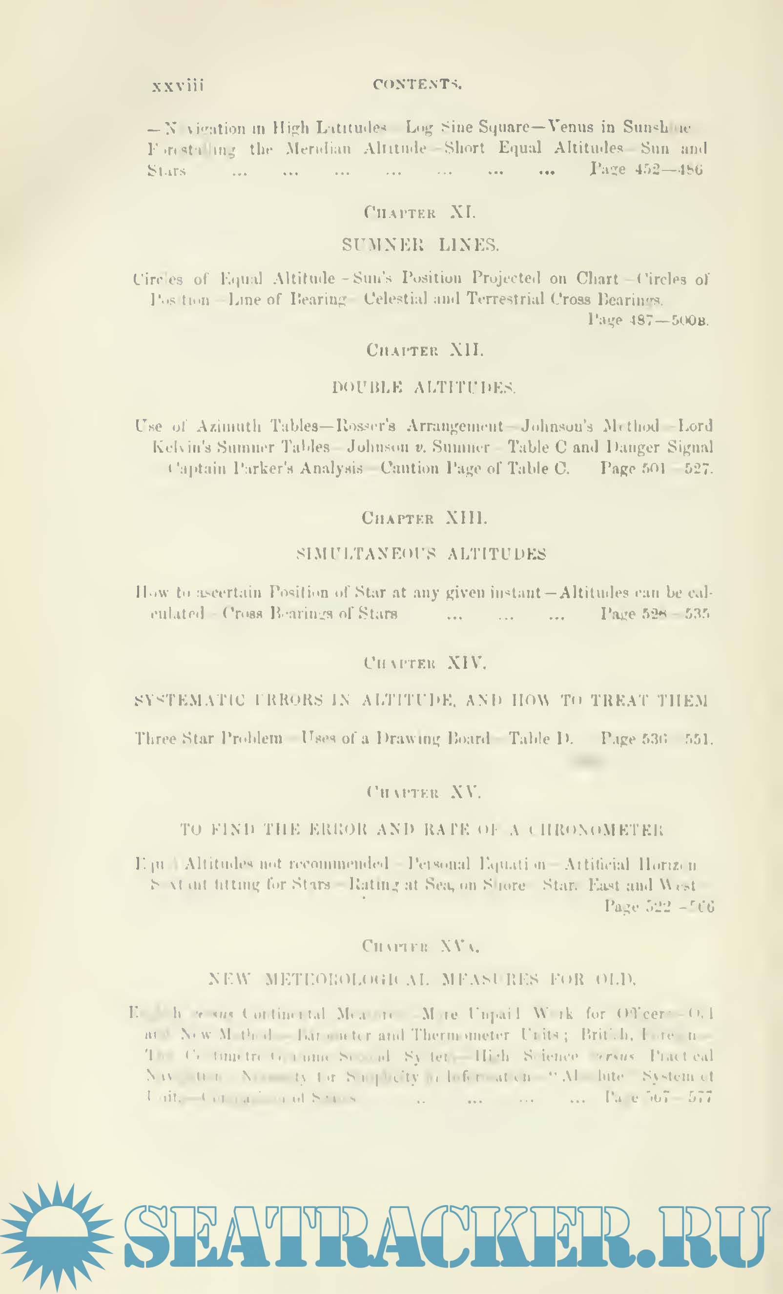 The other sections of this publication address such important aspects as sounding machines, sounding logs, binoculars and telescope used at sea, ocean meteorology, time and position, summer lines and double altitudes, compass adjustment and so many others - the list is really impressive.