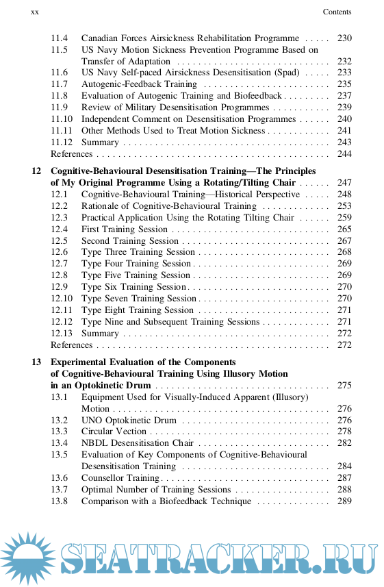 Description: This book offers a survey of the state of the art in the field of motion sickness. It begins by describing the historical background and the current definition of motion sickness, then discusses the prevalence among individuals, along with the physiological and psychological concomitants of the disorder. It reviews the incidence of motion sickness in numerous provocative motion environments and discusses various personal factors that appear to influence this aspect. Various characteristics of provocative motion stimuli are also described, together with the results of studies conducted in the laboratory, on motion simulators and at sea. Laboratory tests that could potentially be used to assess an individual’s susceptibility to motion sickness and his or her ability to adapt to motion environments are presented in detail, together with the ways in which individuals might be trained to prevent motion sickness or more effectively cope with motion environments. In closing, the book reports on the cognitive-behavioral approach developed by the author (Dobie, 1963) as well as the various desensitization programs employed in military settings, and discusses the relative effectiveness of these methods in comparison to cognitive-behavioral counseling.
