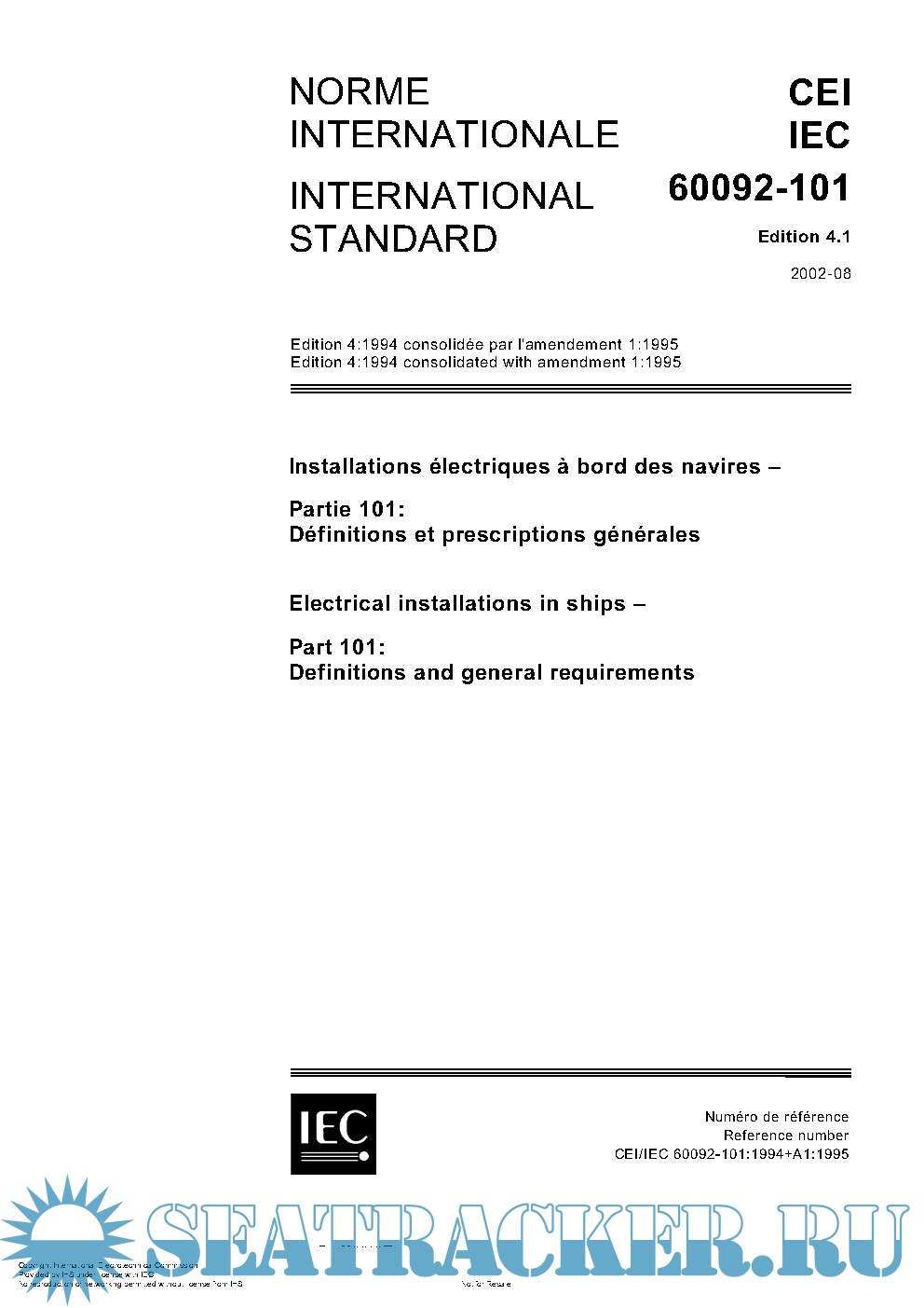 Description: IEC 60092: Electrical installations in ships, forms a series of international standards for electrical installations in sea-going ships, incorporating good practice and co-ordinating, as far as possible, existing rules. These standards form a code of practical interpretation and amplification of the requirements of the International convention on safety of life at sea, a guide for future regulations which may be prepared and a statement of practice for use by shipowners, shipbuilders and appropriate organizations.