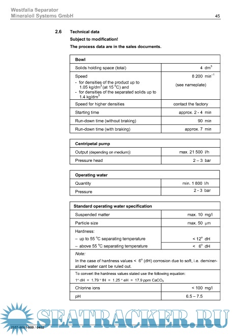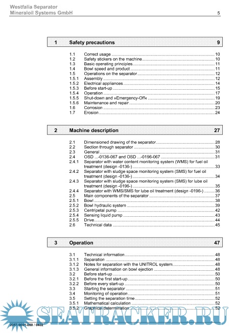 Manuals for GEA (Westfalia) Separators OSD 2-02/SSD 2-02
