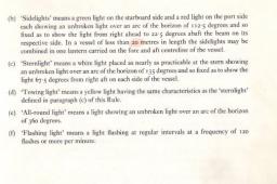 Description: The International Regulations for Preventing Collisions at Sea 1972 (COLREGs) are published by the International Maritime Organization (IMO) and set out, among other things, the "rules of the road" or navigation rules to be followed by ships and other vessels at sea to prevent collisions between two or more vessels.