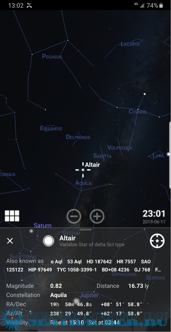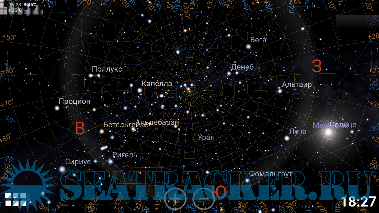• показ реального вид неба (с использованием акселерометра)