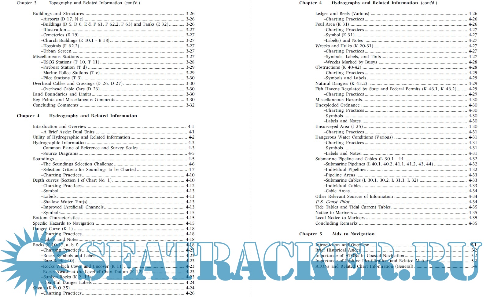 Year: 1997 Language: english Author: NOAA Genre: Manual Format: PDF Quality: eBook Number of pages: 304 Description: Many products are sold with users manuals. Some, such as those for an aircraft, automobiles, or pieces of electronic equipment, are quite voluminous and complex. Others are more modest. A patented insect destruction novelty device sold several years ago consisted of only two small wooden blocks. Even this novelty device came with a users manual; it consisted of a single sheet of paper with the following instruction, place insect on face of one block and firmly place second block on top of first block. Generally speaking, the more sophisticated and important the item, the more elaborate the users manual. The modern nautical chart is reasonably complex and certainly an essential tool for the mariner. Yet, aside from passing mention in textbooks on navigation and the publication of Chart No. 1, no users manual had been published for the nautical chart. Arguably, such a publication is long overdue. This manual explains what is presented on the nautical chart, highlights the utility of this information, describes the charting conventions used to depict features and items of interest, and provides some practical pointers on how this information is used. It is written to serve many types of users, ranging from operators of recreational vessels to those who drive heavy iron.