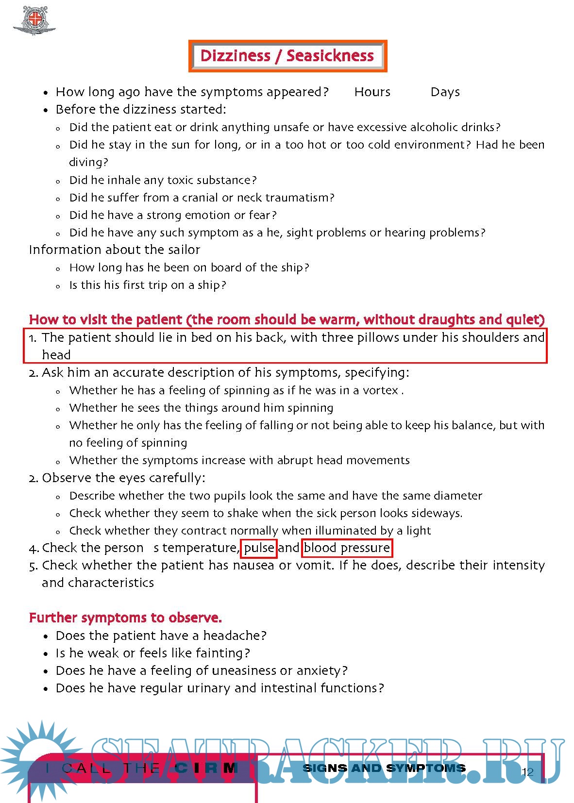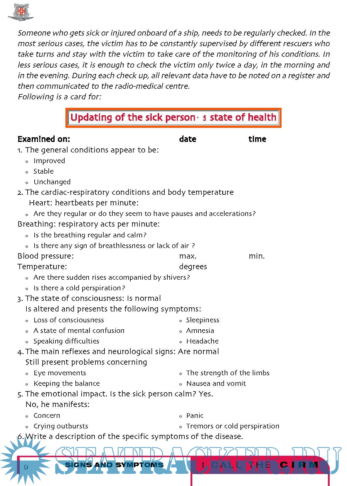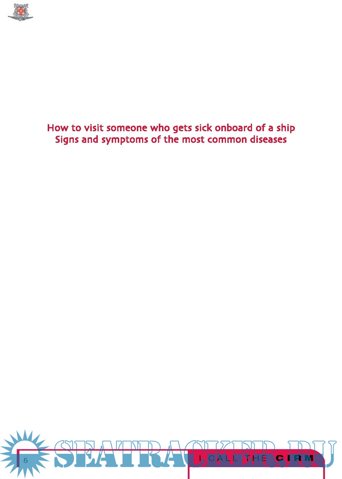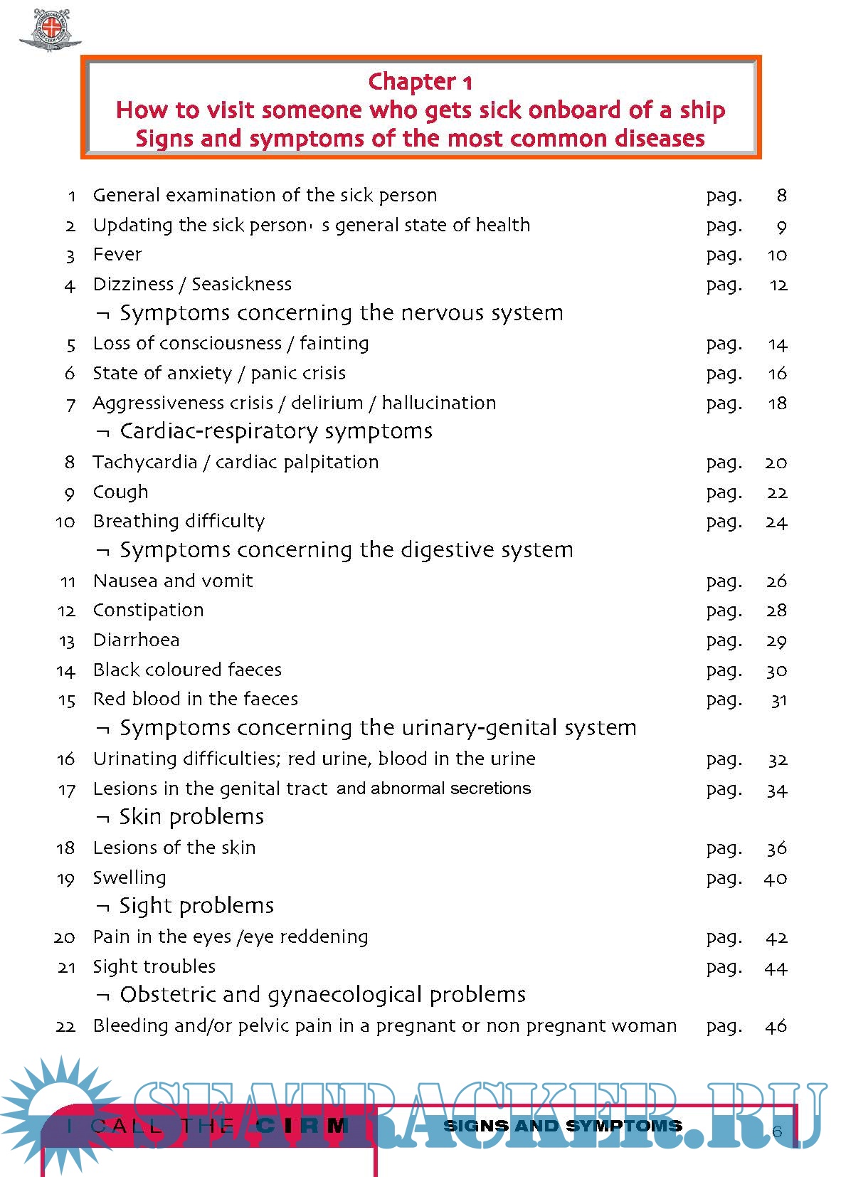 How to visit someone who gets sick onboard of a shipSigns and symptoms of the most frequent diseases. pag. 6