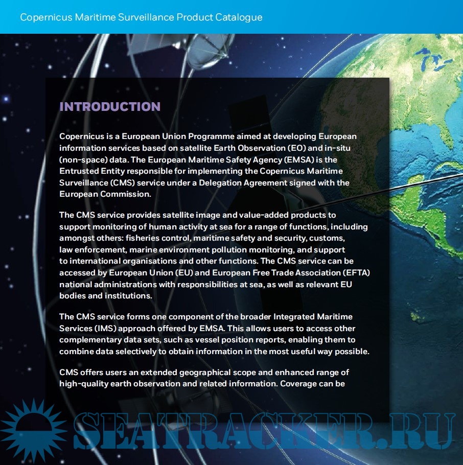 Description: Copernicus is a European Union Programme aimed at developing European information services based on satellite Earth Observation (EO) and in-situ (non-space) data. The European Maritime Safety Agency (EMSA) is the Entrusted Entity responsible for implementing the Copernicus Maritime Surveillance (CMS) service under a Delegation Agreement signed with the European Commission.
