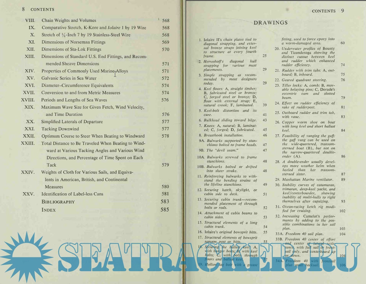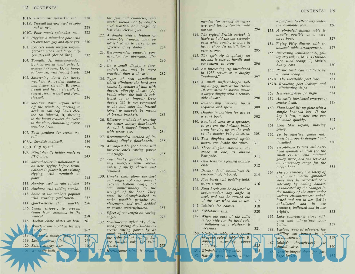 Year: 1979 Language: english Author: Donald M. Street Genre: Reference book Publisher: W. W. Norton & Co Edition: First ISBN: 978-0393032093 Format: PDF Quality: Scanned pages Pages count: 595 Description: A guide for the individual who has sailed small crafts and is interested in owning a cruising yacht, that provides practical data on boat construction, maintenance, navigation, and safety. The second of this great duo! This one goes into much more detail, and has the incredible illustrations of Bruce Bingham through. The Author DONALD M. STREET, Jr., basically lives wherever Iolaire's anchor happens to be down; he winters in the eastern Caribbean and summers in Glandore, Ireland. He is the major Lloyd's insurance broker in the eastern Caribbean, serves as a design consultant on new construction and on the redesign of older boats, is agent for Cheong Lee sails, and in order to keep in touch with the latest developments in cruising yachts, delivers boats from the United States to the Islands.